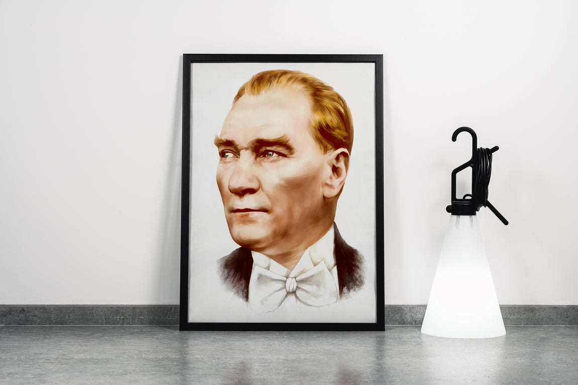 Detaylı baskı tekniğiyle hazırlanan bu tablo, Atatürk’ün güçlü duruşunu ve karizmatik ifadesini öne çıkarıyor. Canlı renkler ve net çizgiler, dekorasyonunuza tarihi bir derinlik katarak mekanınıza hem anlam hem de şıklık katıyor. Uzun ömürlü baskı kalitesi sayesinde, zamanla solma yapmadan estetik duruşunu korur. Her ortamda dikkat çekici bir atmosfer yaratmak için ideal bir tercih.