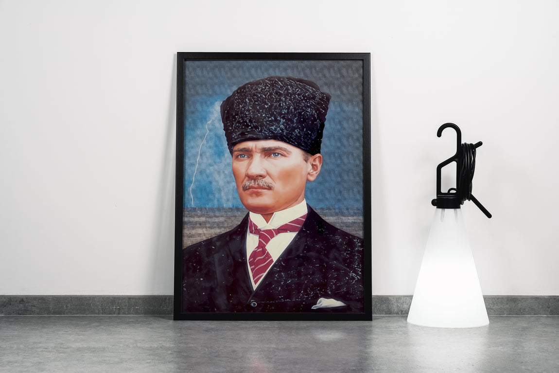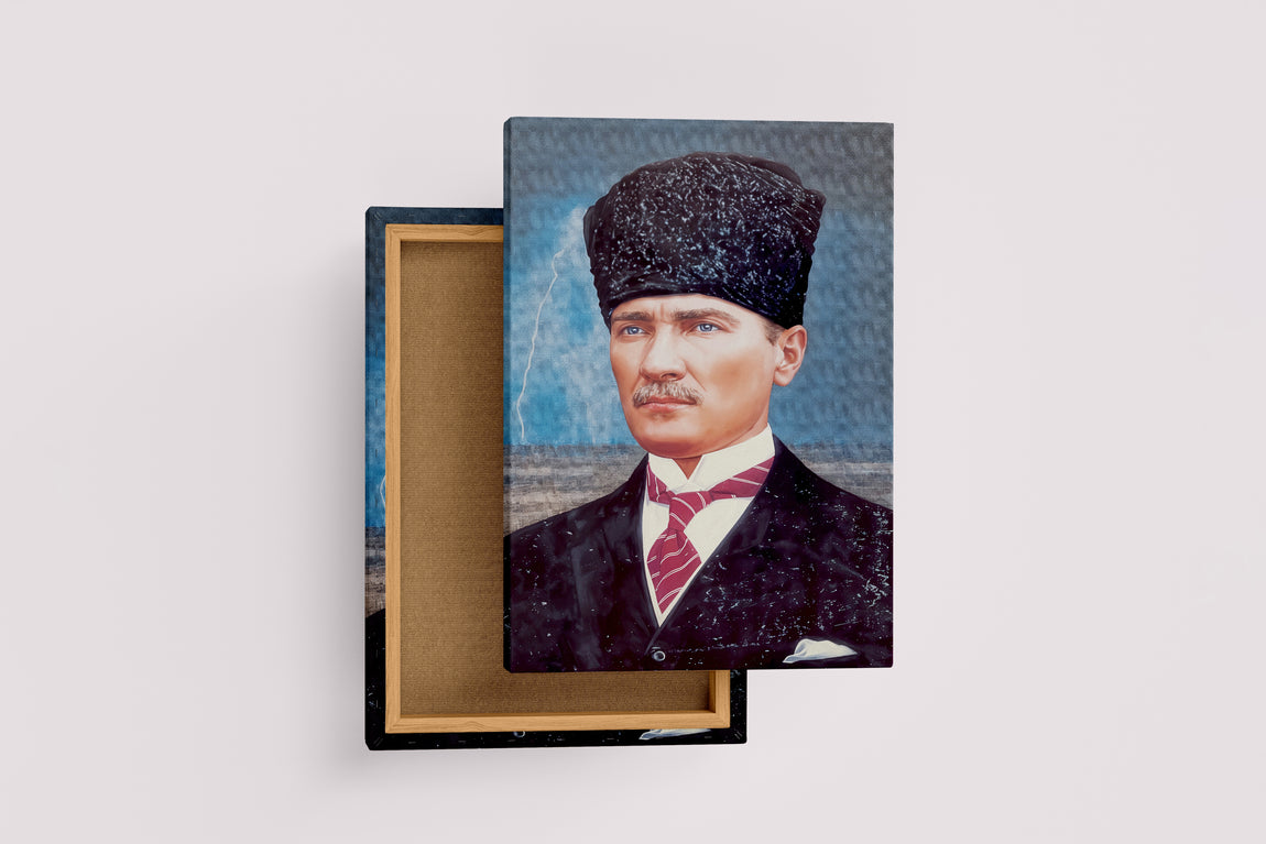 Modern dekorasyonunuza anlam katacak, kaliteli baskı teknolojisiyle hazırlanmış bu ürün, Atatürk'ün etkileyici portresini net ve canlı renklerle sunar. Dayanıklı kanvas üzerine işlenmiş detaylar uzun ömürlü kullanım sağlar. Duvarınıza güçlü bir atmosfer kazandırmak için ideal bir tercih.
