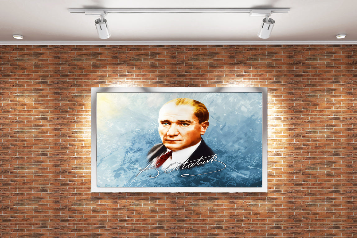 Atatürk portre with his signature model 3, art, kanvas tablo