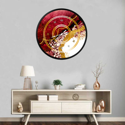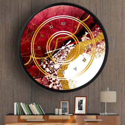 bordo ve altın akışkan sanat deseni, MDF duvar saati