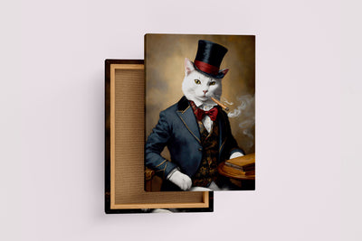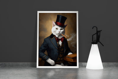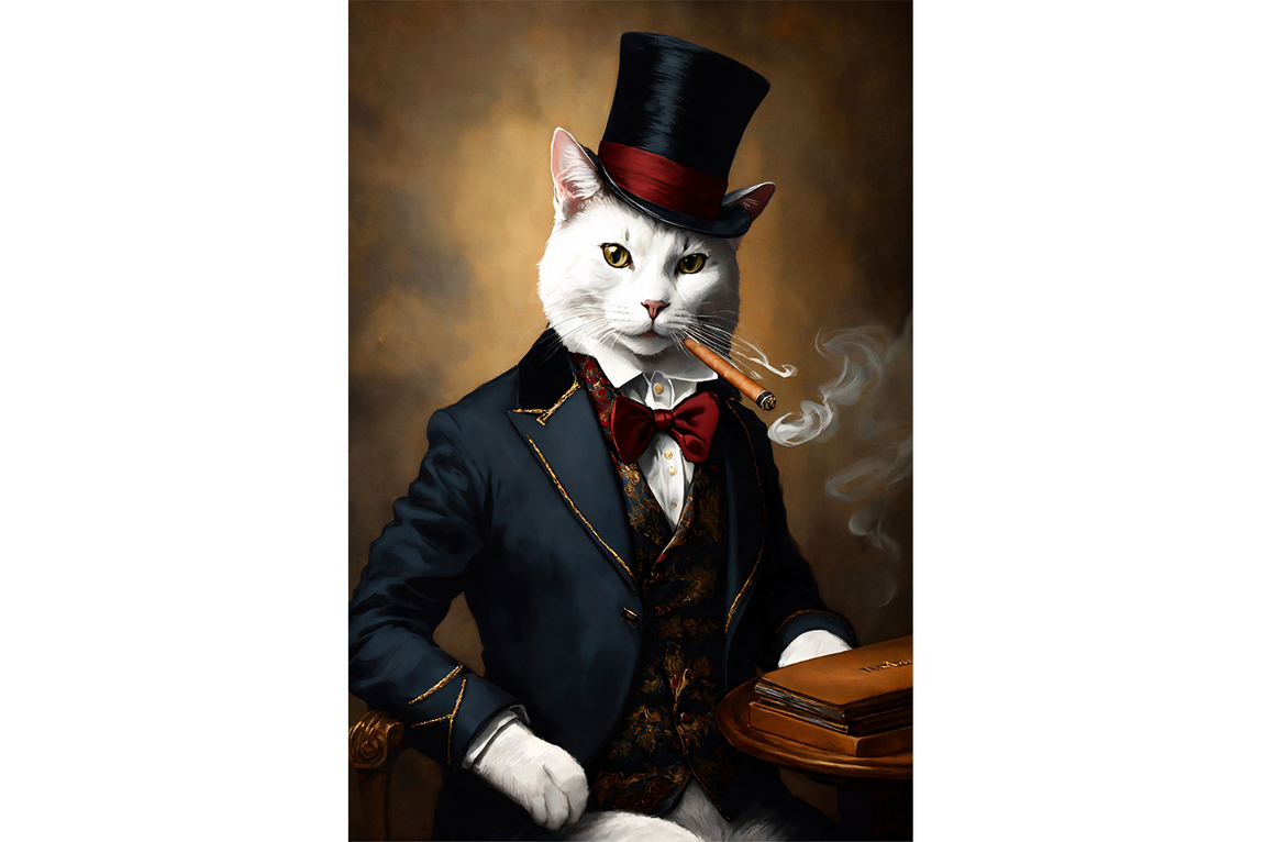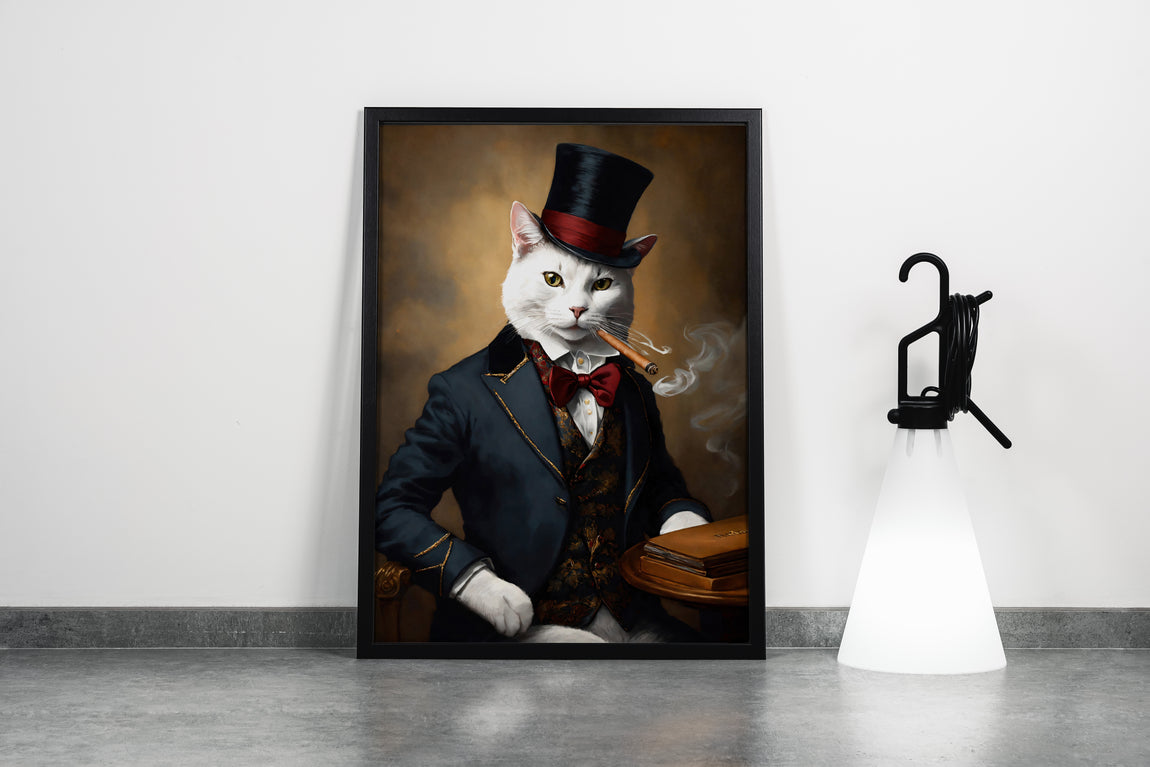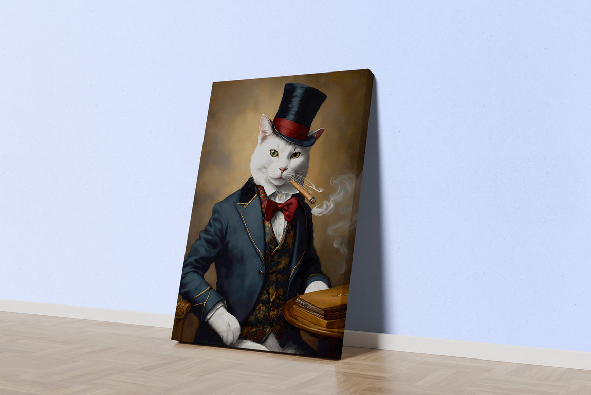 cat in a hat smoking a cigar, smoke, pet, art, kanvas tablo