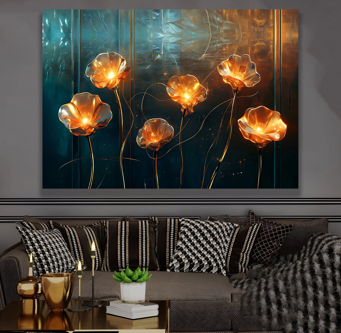 Çiçek Motifleri – Uzaktan Kumandalı LED Işıklı Kanvas Tablo