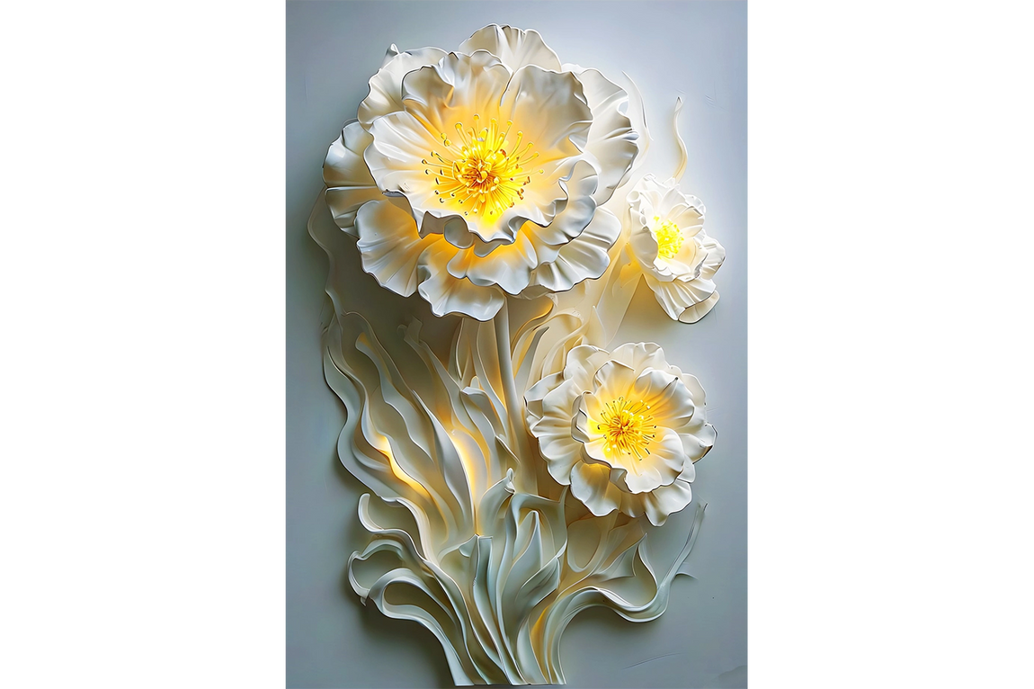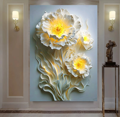 Çiçek Motifli – Uzaktan Kumandalı LED Işıklı Kanvas Tablo