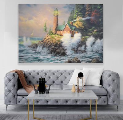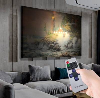 Dev Dalgalar ve Deniz Feneri – Uzaktan Kumandalı LED Işıklı Kanvas Tablo