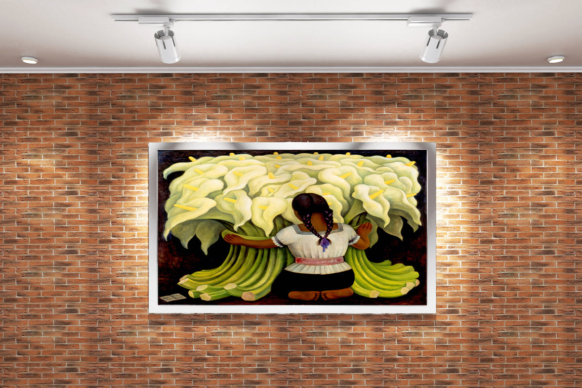 Diego Rivera'nın İkonik Eseri Çiçek Satıcısı Kız ve Kala Çiçekleri Meksika Sanatı Kanvas Tablo
