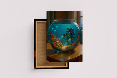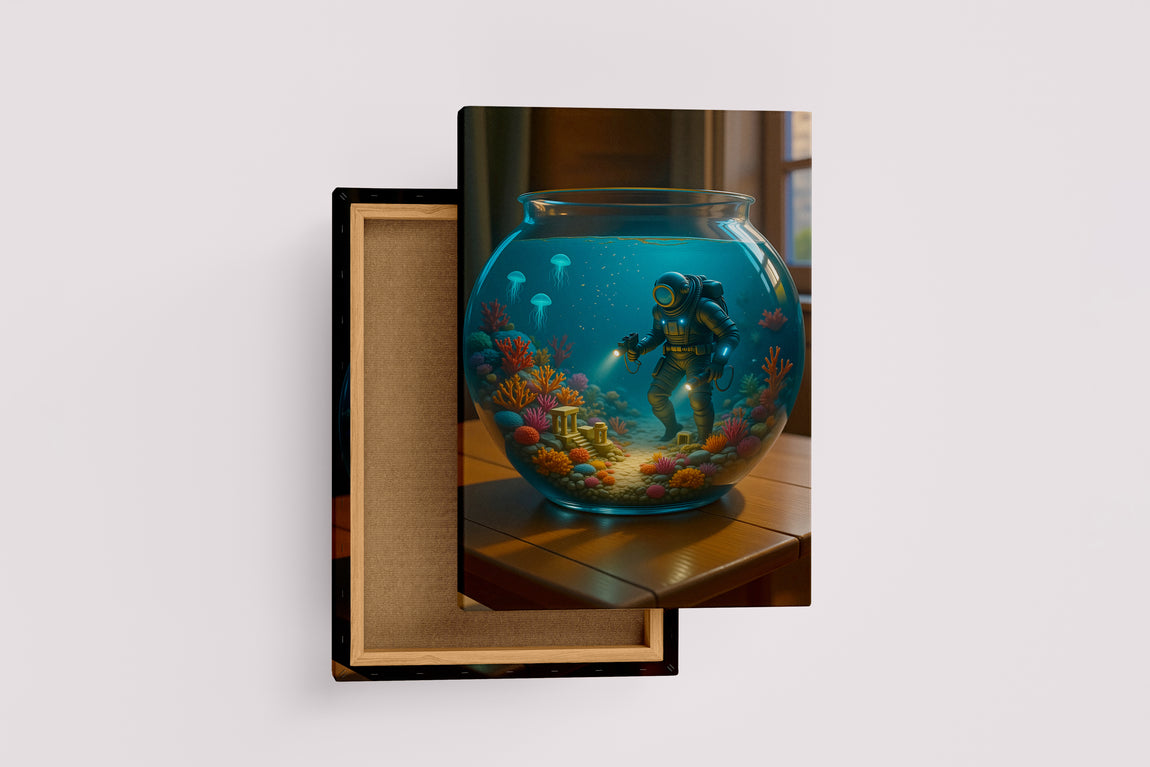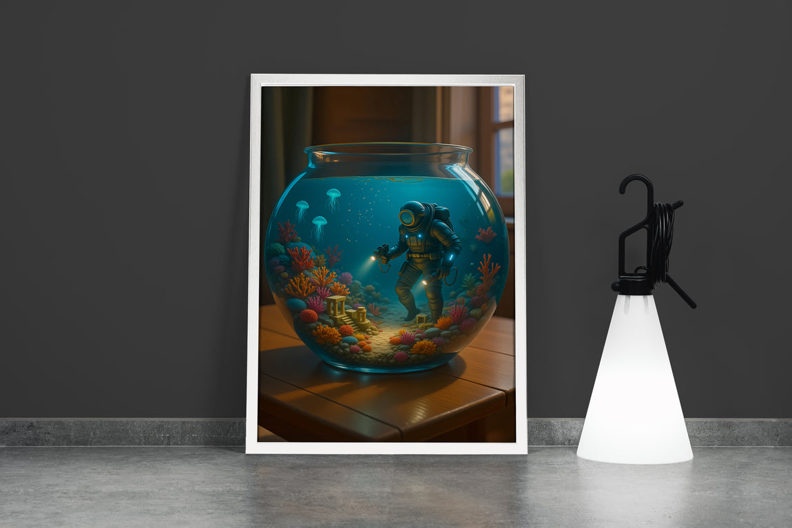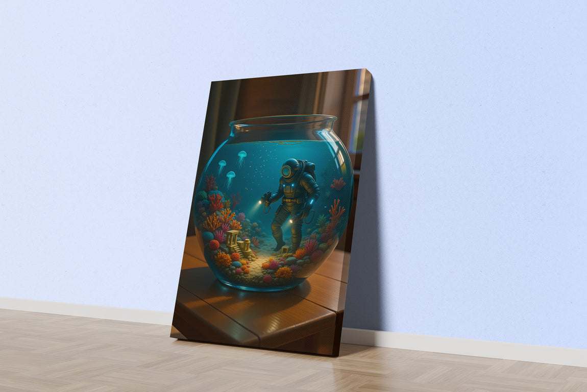 Fanus İçindeki Okyanus Mercan Resifini Keşfeden Dalgıç Kavramsal Sanat Kanvas Tablo