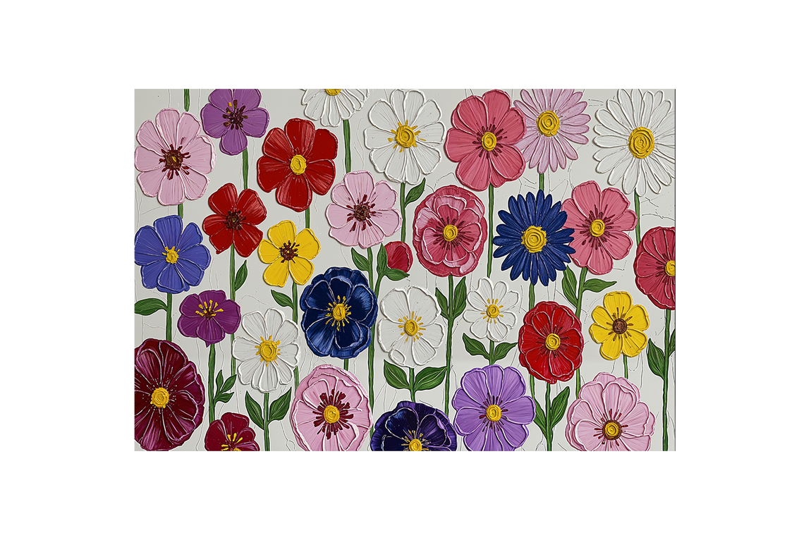 Renkli çiçek desenleriyle hayat bulan bu baskı, mekanlarınıza canlılık katmak için ideal. Kaliteli kanvas üzerine özenle uygulanmış olan baskı, uzun ömürlü kullanım sunar ve dekoratif dokunuşlarınızı güçlendirir. Doğadan ilham alan detaylar, odalarınıza sıcaklık ve samimiyet getirir. Estetik ve dayanıklı yapısıyla yaşam alanlarınızı anında canlandırır.