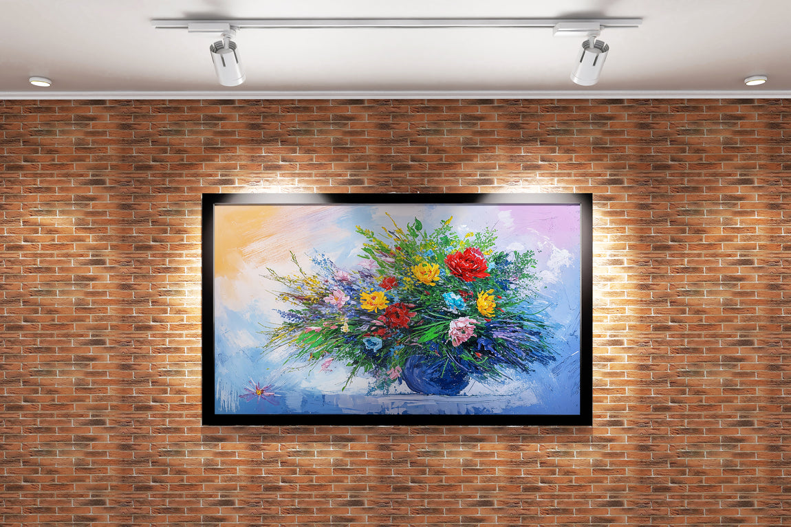 flower motif, colorful flowers/vase, art, kanvas tablo