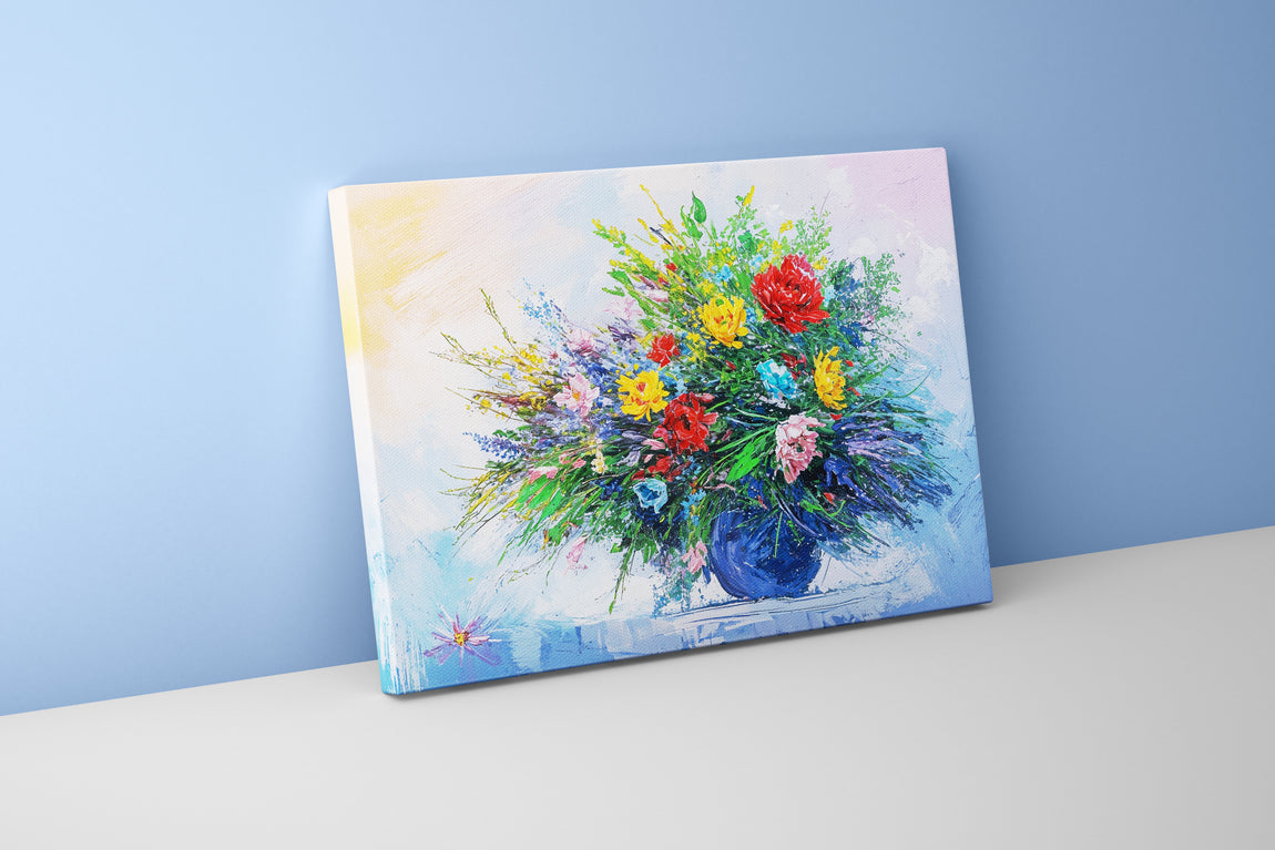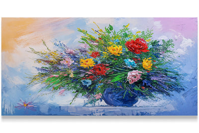 Parlak renklerle bezenmiş çiçek ve vazo detaylarının baskı kalitesi, yaşam alanlarınıza canlılık katıyor. Yüksek çözünürlüklü baskı sayesinde her detay net ve etkileyici şekilde ön plana çıkıyor. Duvar dekorasyonunda estetik ve renk uyumunu sağlarken, dayanıklı malzemesi uzun ömürlü kullanım sunar. Modern ve şık görünümüyle mekânlarınıza zarif bir hava getirir.