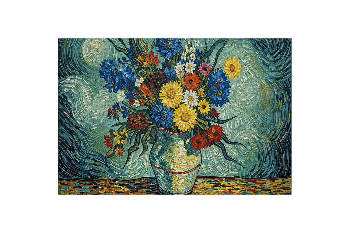 Canlı renklerle öne çıkan baskı, çiçek motiflerinin zarif detayları ile mekânınıza sıcaklık ve estetik katıyor. Van Gogh’un Rhône temalı eserinden ilham alan bu sanat çalışması, kaliteli kanvas üzerine basılarak uzun ömürlü ve dayanıklı bir görünüm sunar. İç mekanlarınıza şıklık ve sofistike bir atmosfer getirmek için ideal bir seçim.