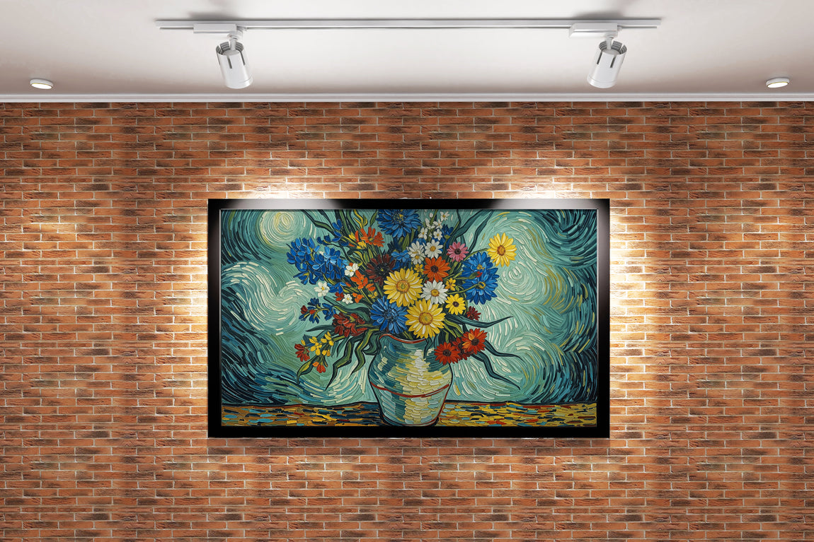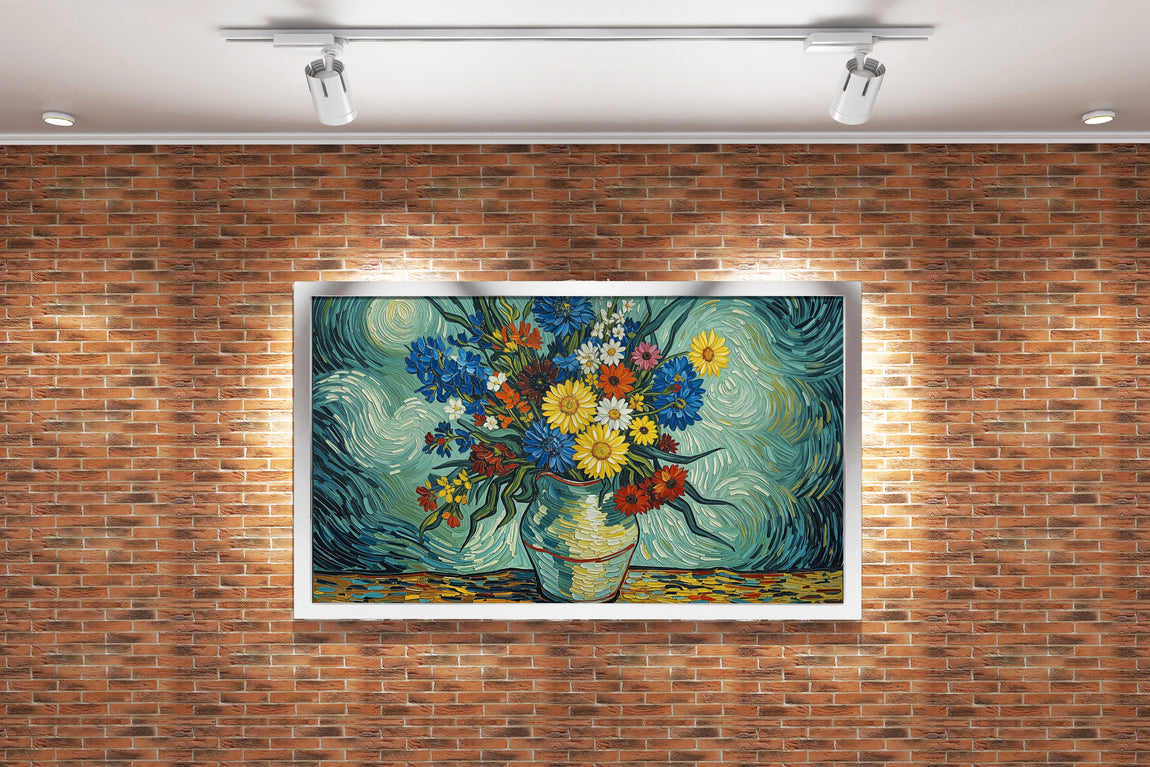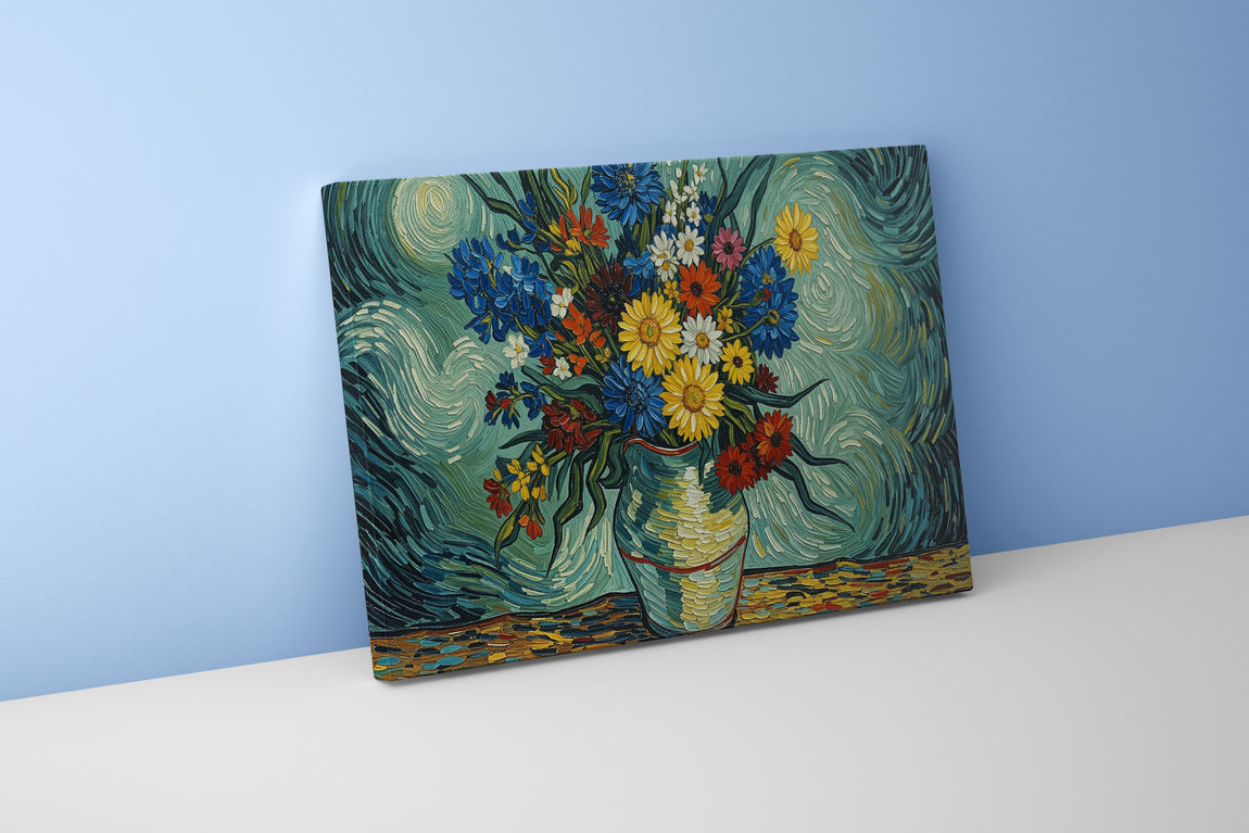 flower motif, flowers in a vase van gogh rhone themed, art, kanvas tablo