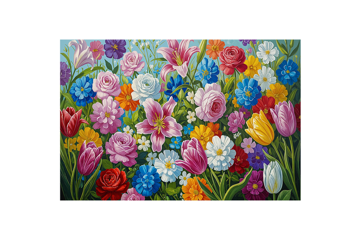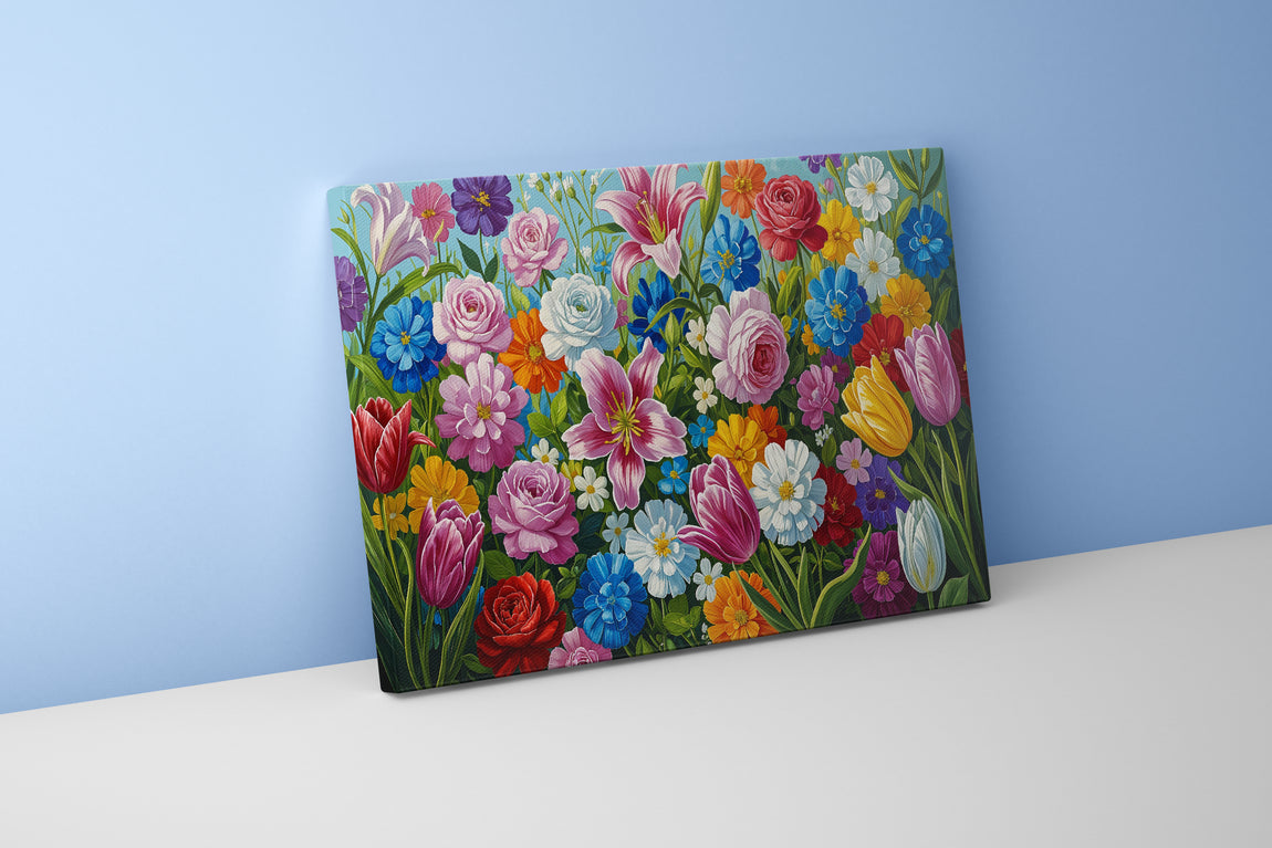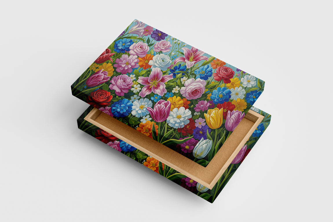 Canlı ve zengin çiçek desenleriyle renkli bir bahçe atmosferi sunan bu baskı, yaşam alanlarınıza taze ve enerjik bir dokunuş katar. Kaliteli kanvas yüzey üzerine basılan detaylı motifler, uzun ömürlü ve keskin renklerle dekorasyonunuza estetik bir değer kazandırır. Hem modern hem de klasik dekorasyon stilleriyle uyum sağlayan bu ürün, duvarlarınıza doğal bir güzellik getirirken mekanınızın havasını anında değiştirir.
