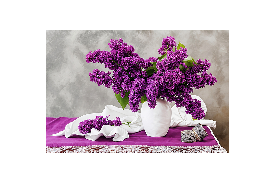 Bu baskı, zarif mor çiçekler ve beyaz bir vazoyu detaylı şekilde yansıtarak mekânınıza sofistike bir dokunuş katıyor. Canlı renkleri ve hassas çizgileri sayesinde odanıza sıcaklık ve estetik değer sunar. Yüksek kaliteli malzemeden üretilmiş olması, uzun ömürlü ve dayanıklı kullanım sağlar. Modern dekorasyonlarla mükemmel uyum gösterirken, ev veya ofis ortamınızı sade ama etkileyici bir şekilde tamamlar.