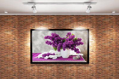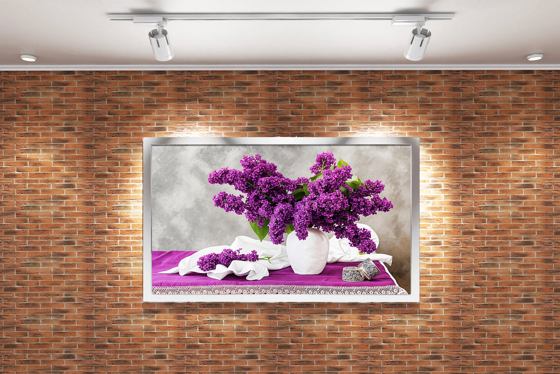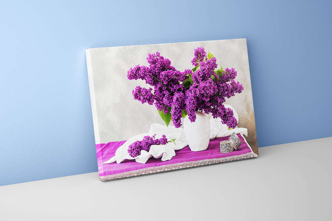 flower motif, purple flowers/white vase, art, kanvas tablo