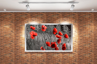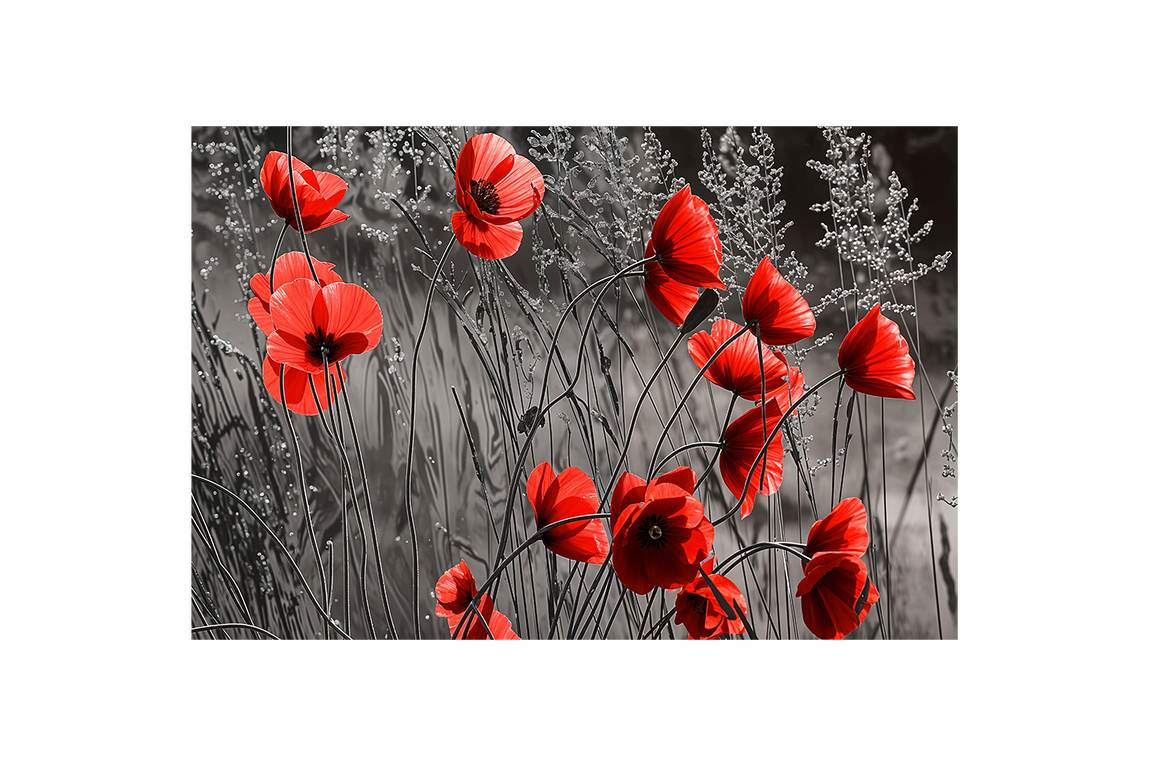 Canlı kırmızı çiçeklerin karanlık bir arka plan üzerinde zarifçe sergilendiği bu baskı, her mekâna sofistike ve derinlik katan bir atmosfer sunar. Detayları yüksek kaliteli baskı tekniğiyle öne çıkan tasarım, modern dekorasyonunuza şıklık katarken, göz alıcı renkleriyle dikkat çeker. Dayanıklı malzemeden üretilmiş olması, uzun ömürlü kullanım ve kolay temizliği garanti eder. Mekânınızda fark yaratmak için ideal bir seçim.