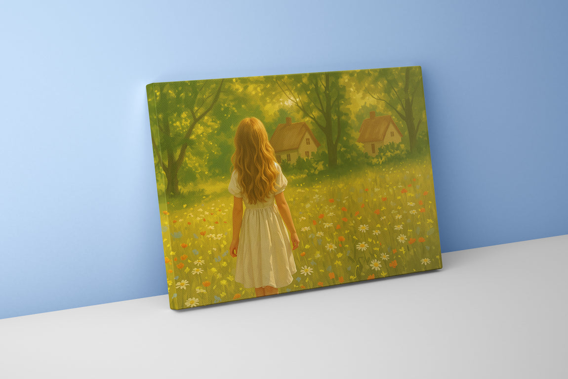 Doğanın huzurunu ve zarif detayları, kaliteli baskı tekniğiyle yaşam alanlarınıza taşıyın. Küçük bir kız çocuğunun çiçekli ev manzarasında bulunduğu bu baskı, odanıza sıcaklık ve dinginlik katacak. Canlı renkler ve net detaylar sayesinde dekorasyonunuza sofistike ve samimi bir dokunuş sağlar. Hem modern hem de doğal atmosfer arayanlar için ideal bir seçim.