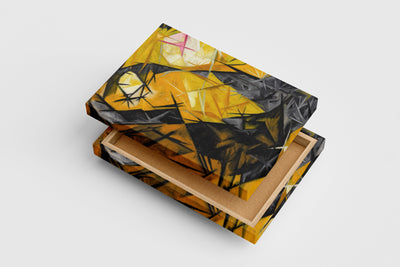 Sanat eserinin ruhunu ve renk canlılığını en doğru şekilde aktarmak üzere, bu kanvas tablo en gelişmiş baskı teknolojileriyle hazırlanmıştır. Orijinal eserin her fırça darbesini ve renk geçişini hissedebileceğiniz bir detay seviyesi sunulur. %100 pamuklu sanatsal kanvas üzerine uygulanan, sağlığa zararsız ve solmaya karşı dayanıklı boyalar, tablonuzun yıllarca ilk günkü gibi kalmasını sağlar. Fırınlanmış masif ahşap şaseye özenle gerilen tablo, duvara asılmaya hazır bir şekilde, korunaklı ambalajıyla size ulaştırılır. Franz Marc'ın bu ölümsüz eserinin enerjisini ve sanatsal derinliğini yaşam alanınıza davet edin.