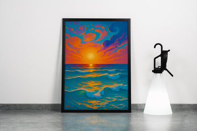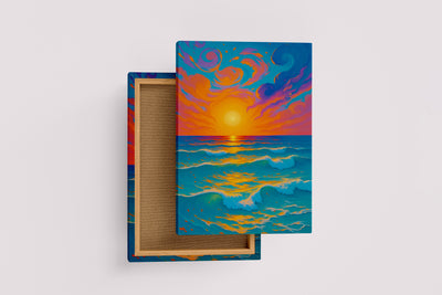 Doğanın en görkemli anlarından biri olan gün batımının tüm enerjisini ve renk cümbüşünü duvarlarınıza taşıyan bu eser, şimdi mekanlarınıza dinamizm ve sıcaklık katmak için kanvas tablo formunda. Bu tablo, sakin bir manzaradan çok daha fazlasını; gökyüzünün ateşiyle okyanusun serinliğinin buluştuğu o anlık, büyülü anı, dışavurumcu ve enerjik bir üslupla betimleyen modern bir sanat çalışmasıdır.
