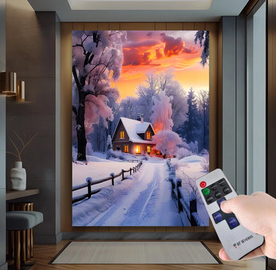Günbatımında Kış Manzarası – Uzaktan Kumandalı LED Işıklı Kanvas Tablo