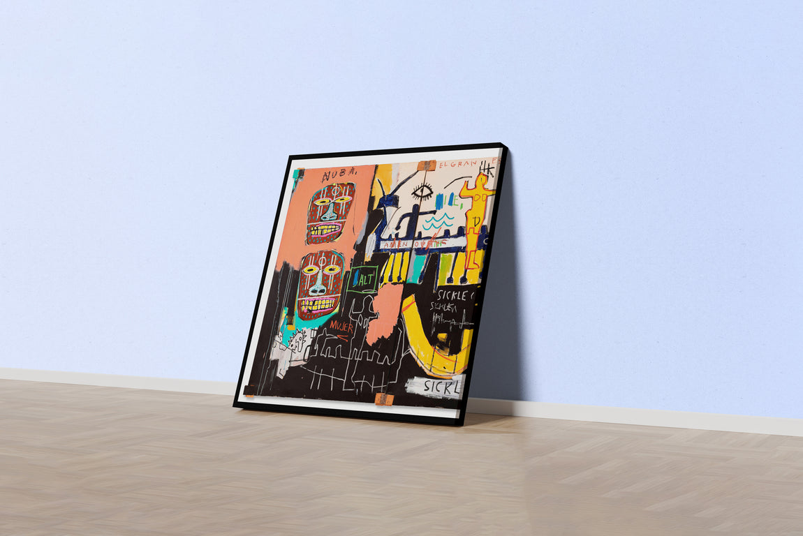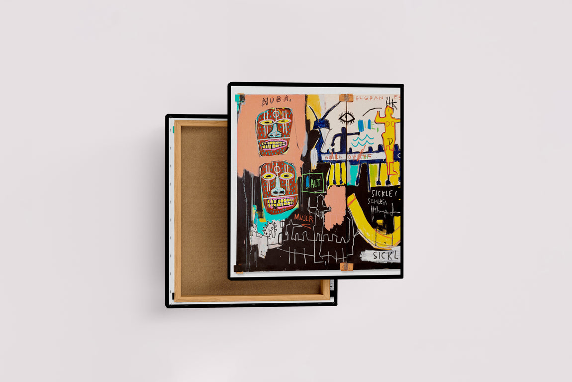 - Maske Benzeri Yüzler: Eserdeki iki ana baş figürü, geleneksel portrelerden çok, Afrika kabile maskelerini andırır. Bu, Basquiat'nın Afrika ve Karayip kökenlerine olan derin ilgisini ve bu mirası modern sanatının merkezine yerleştirme arzusunu yansıtır. Bu yüzler, "ilkel" olarak görülenin aslında ne kadar güçlü ve dışavurumcu olabileceğinin bir kanıtıdır.