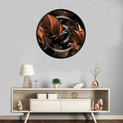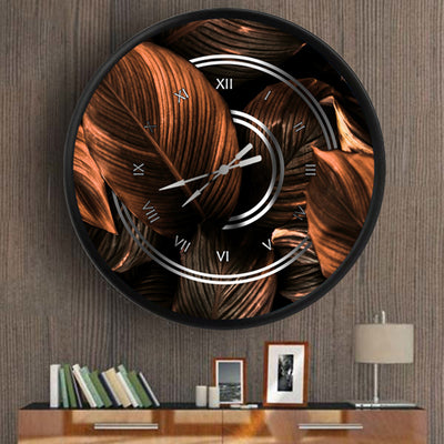 kahverengi tonlarında damarlı geniş yapraklar, MDF duvar saati