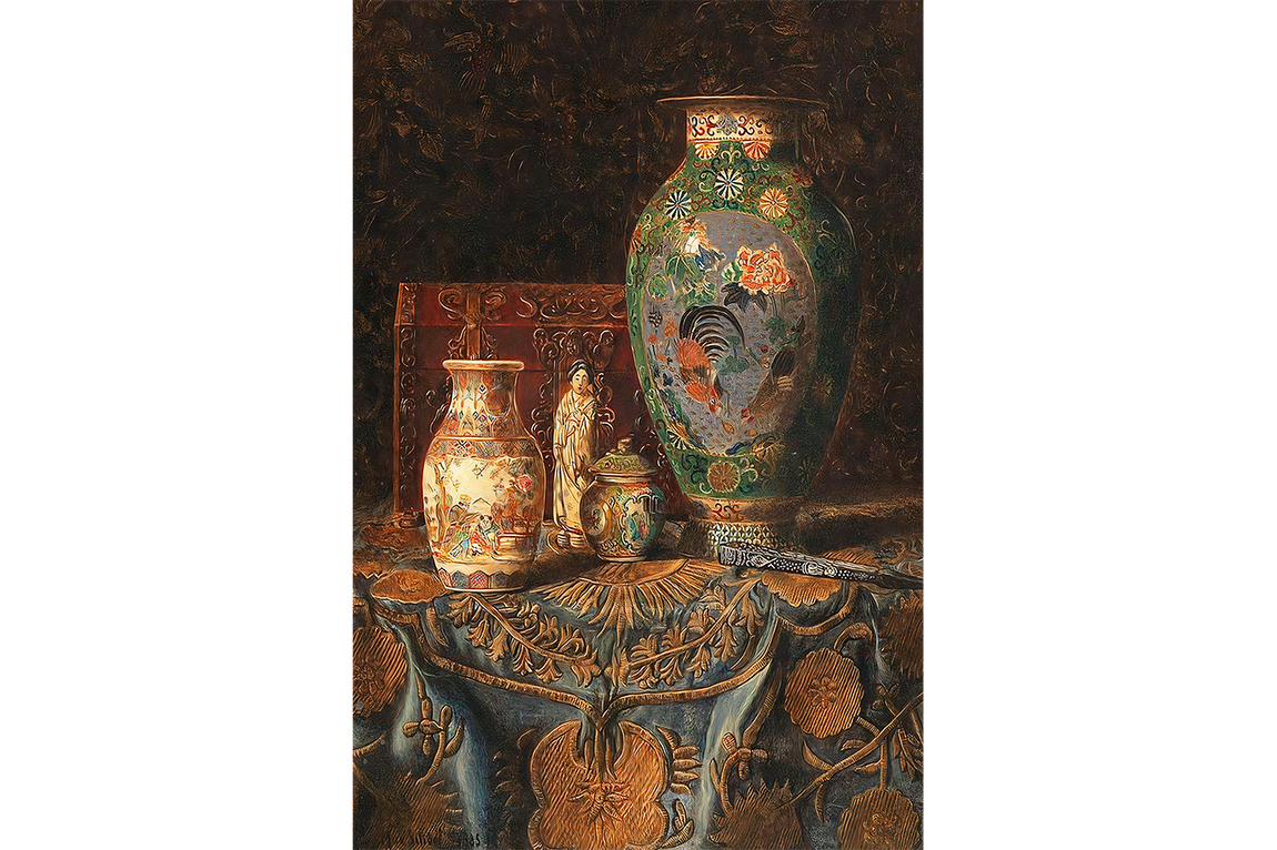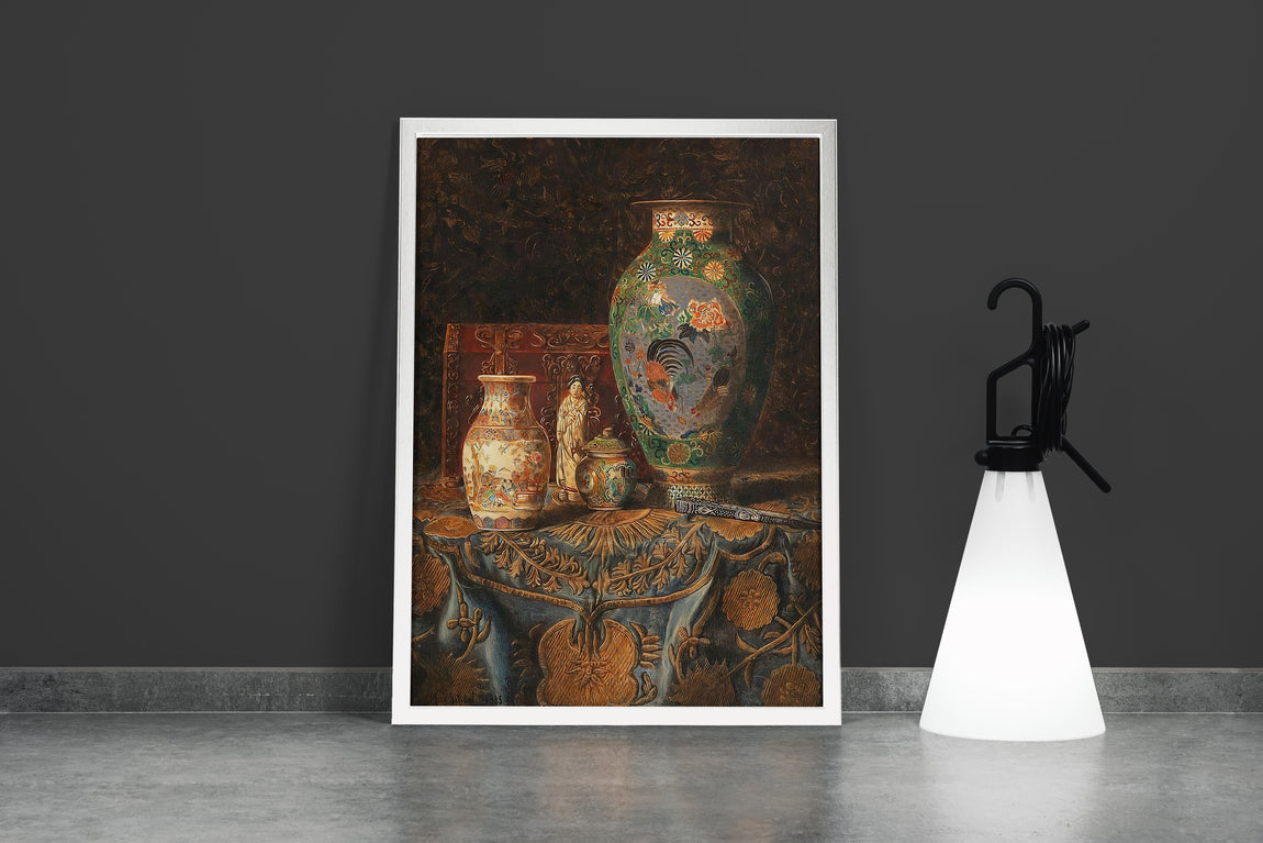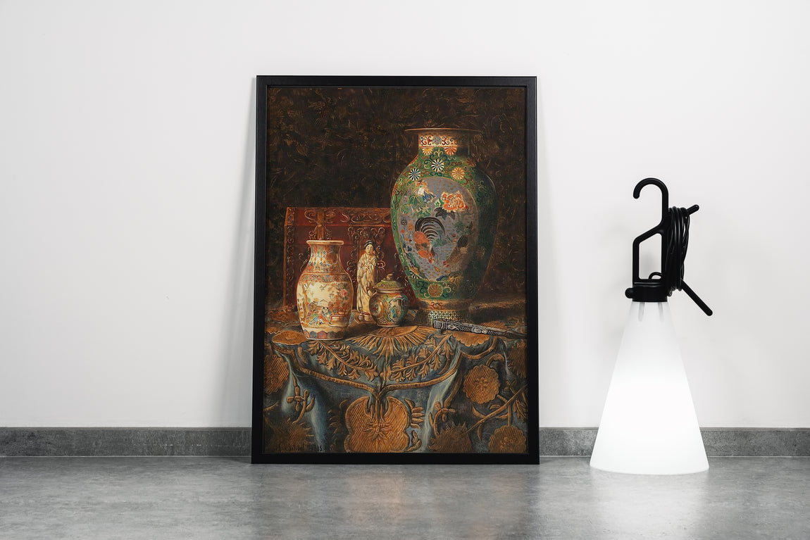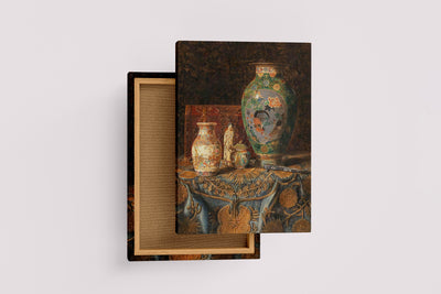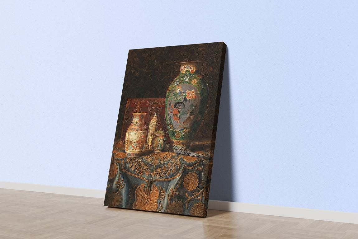 Léon Bonvin Çin Vazoları ve Figürlü Natürmort Kanvas Tablo