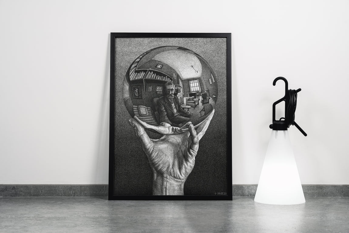 M.C. Escher’in “Elinde Küre Yansımalı Otoportre” eseri, yalnızca bir sanat eseri değil; aynı zamanda zihinsel bir keşif yolculuğudur. Bu kanvas tablo, yaşam alanlarınıza sofistike bir hava katarken, sanatın düşündürücü ve estetik yönünü mekânlarınıza taşır.