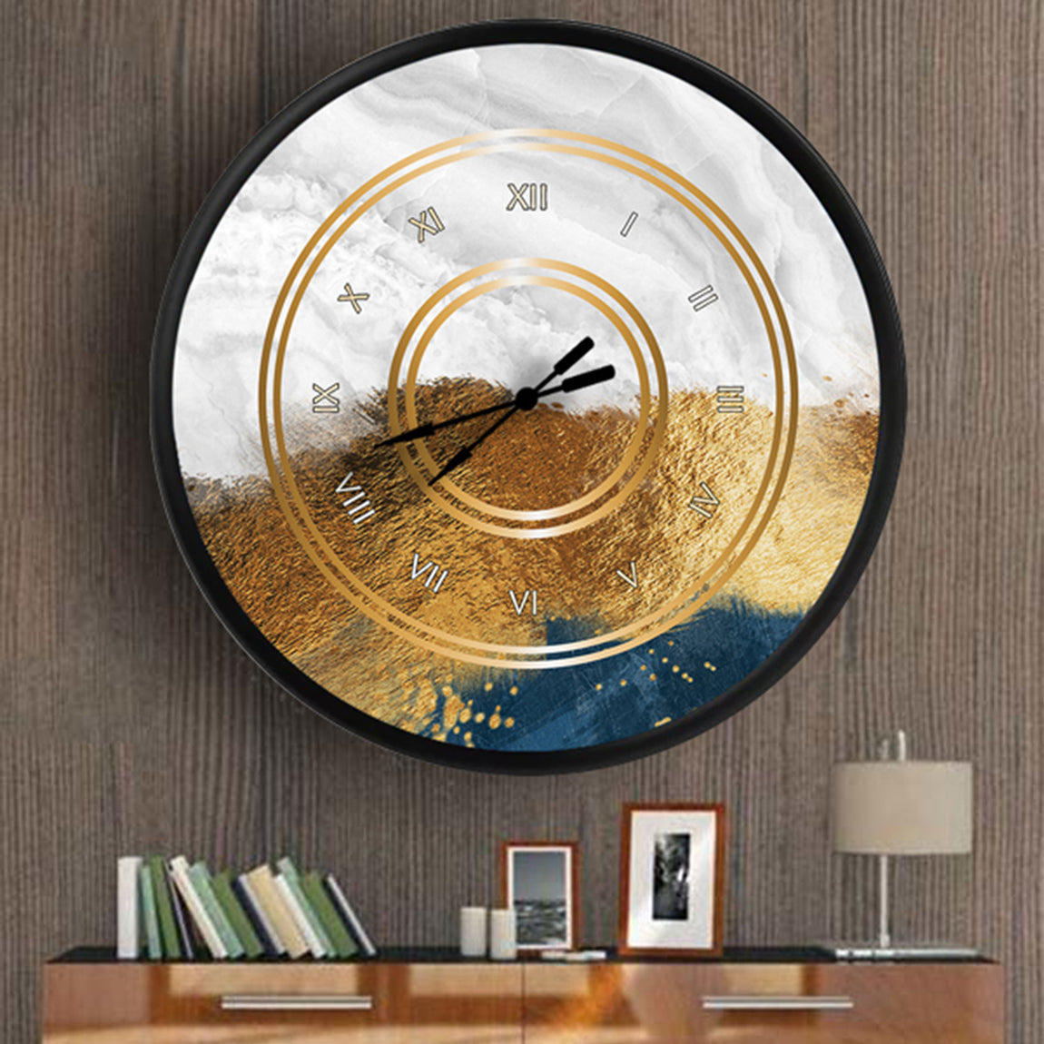mavi, altın ve mermer soyut desen, MDF duvar saati