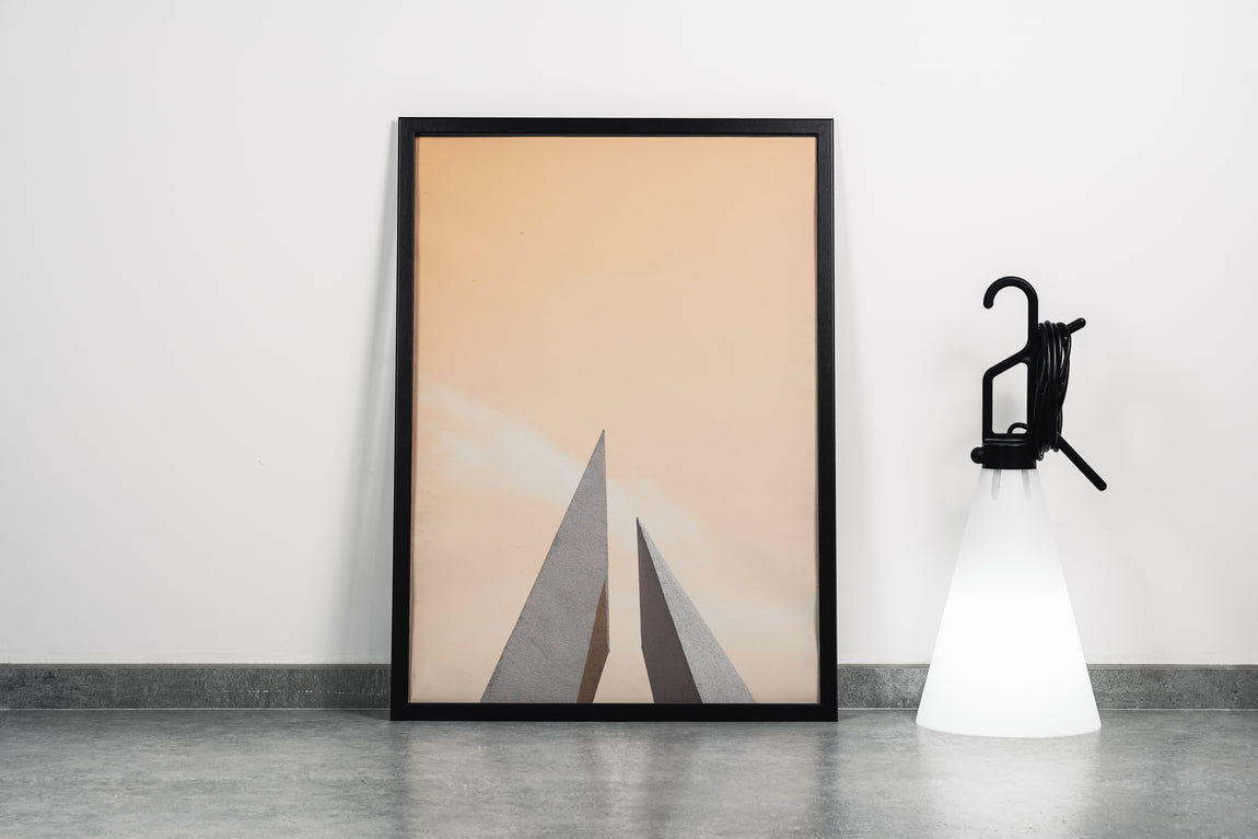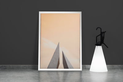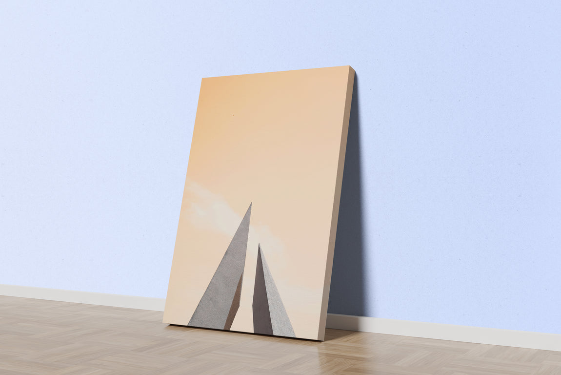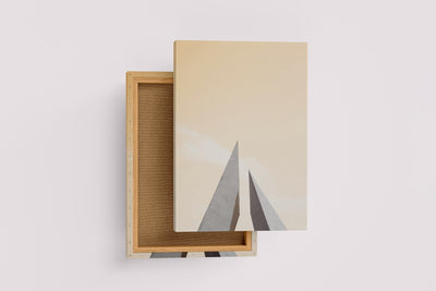 Duvarda zarif bir dokunuş sağlayan baskı, sıcak pastel tonlardaki gökyüzüyle keskin üçgen yapıların minimal bir kompozisyonunu yansıtıyor. Soyut çizgileri ve dengeli renk uyumu, mekânınıza modern ve huzurlu bir atmosfer katarken, kaliteli kanvas ve baskı teknikleri uzun ömürlü ve canlı görüntü sunar. Estetik algınızı güçlendirecek bu eser, sade ama etkileyici bir dekorasyon seçeneği arayanlar için ideal.