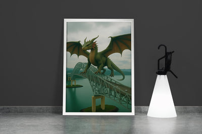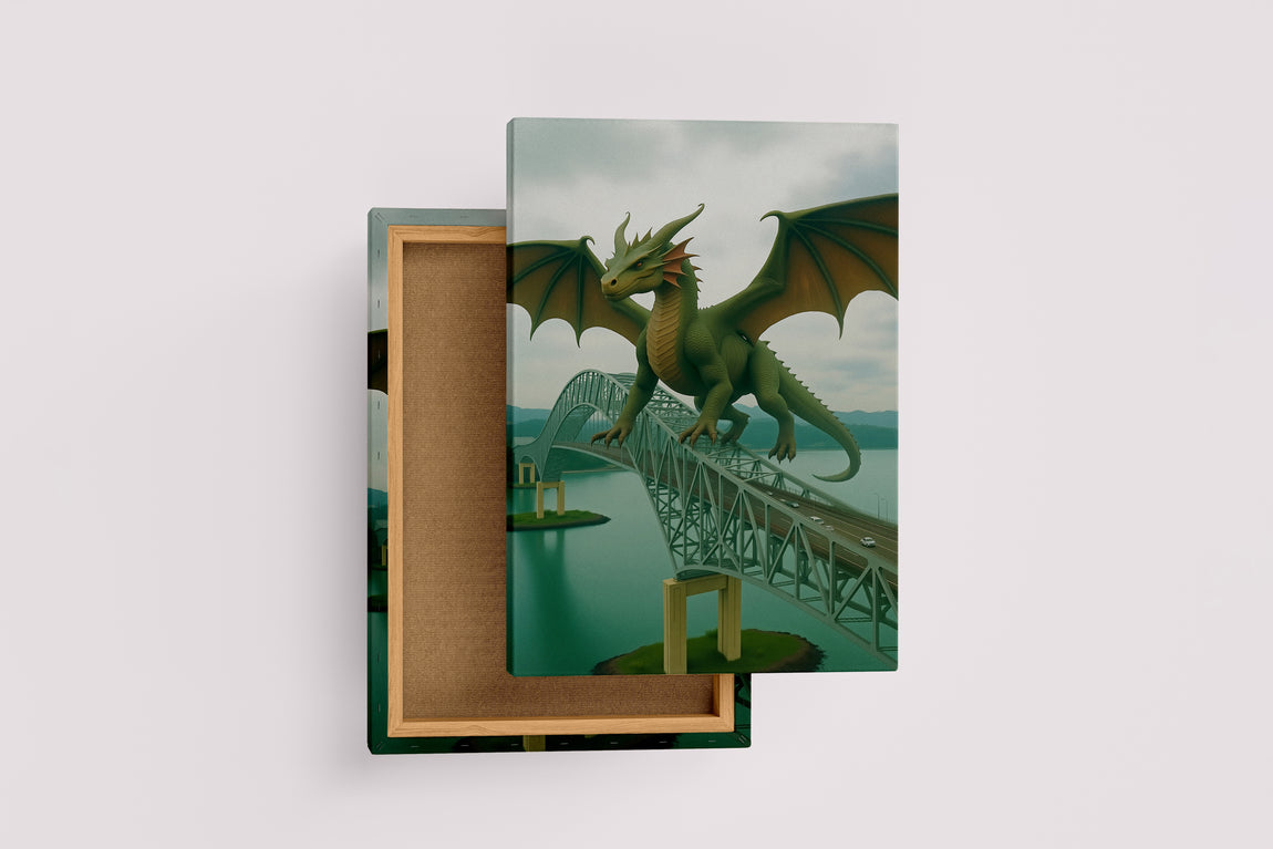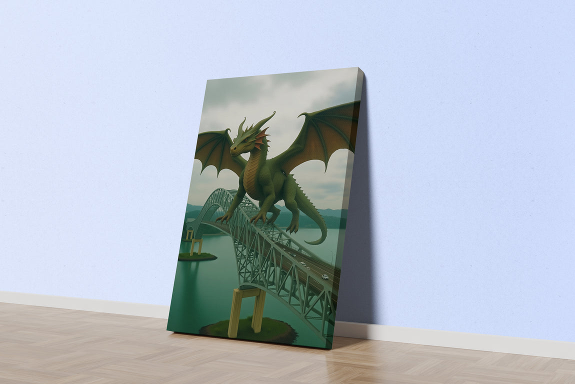 Modern Köprünün Üzerindeki Efsanevi Yaratık Yeşil Ejderha Konsept Sanatı Kanvas Tablo