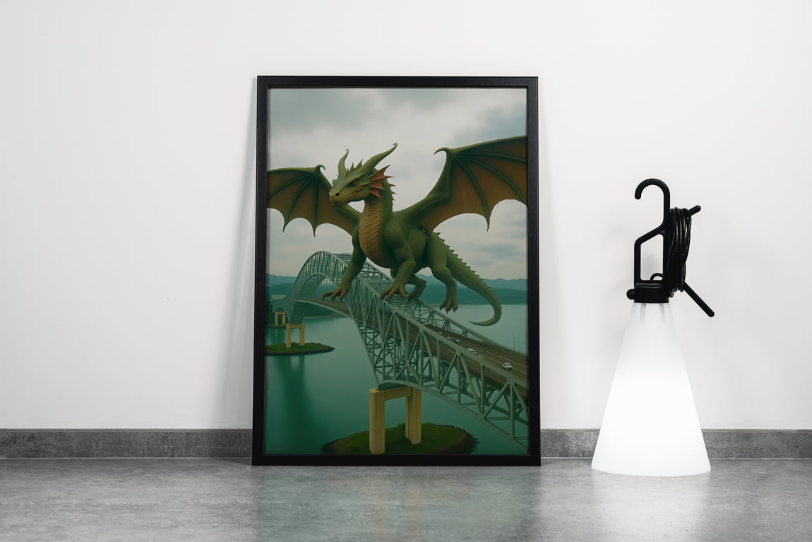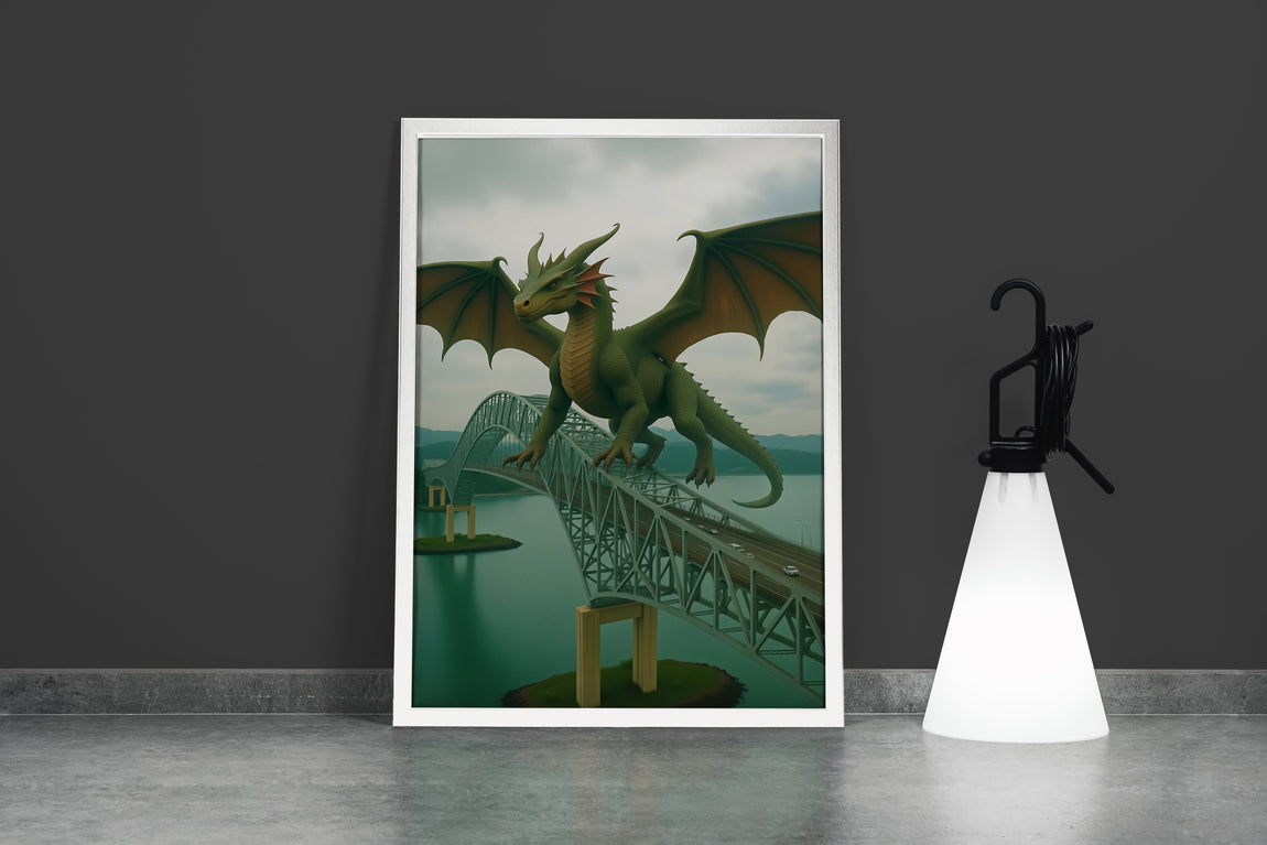 Bu eser, izleyiciye basit ama son derece güçlü bir soru sorar: "Eğer efsaneler gerçek olsaydı ve bugün aramızda yaşasalardı ne olurdu?". Sanatçı, bu soruyu, modern bir asma köprünün üzerine tüm heybetiyle tünemiş devasa bir yeşil ejderha imgesiyle yanıtlar. Bu, iki farklı dünyanın – antik mitlerin ve modern mühendisliğin – beklenmedik ve nefes kesici bir karşılaşmasıdır. Köprü, insan aklının, düzeninin ve ilerlemesinin bir sembolü iken, ejderha, doğanın o kontrol edilemez, ilkel ve sihirli gücünü temsil eder. Bu sahne, bu iki gücün bir aradalığını, belki bir çatışmayı değil ama merak ve hayranlık dolu bir yüzleşmeyi anlatır.