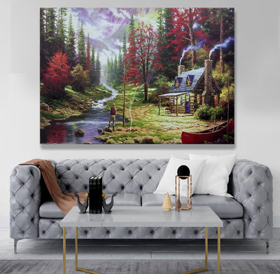 Nehir Kulübesi – Uzaktan Kumandalı LED Işıklı Kanvas Tablo