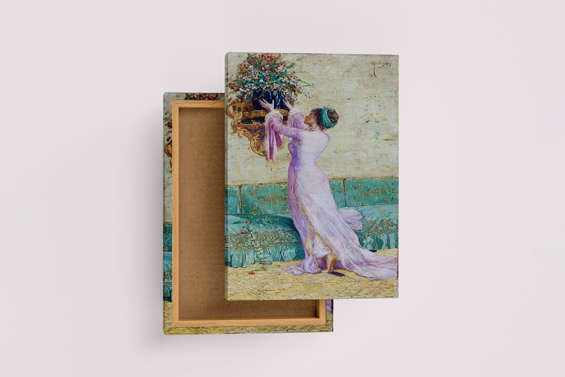 Osman Hamdi Bey Çiçek Yerleştiren Kadın Kanvas Tablo