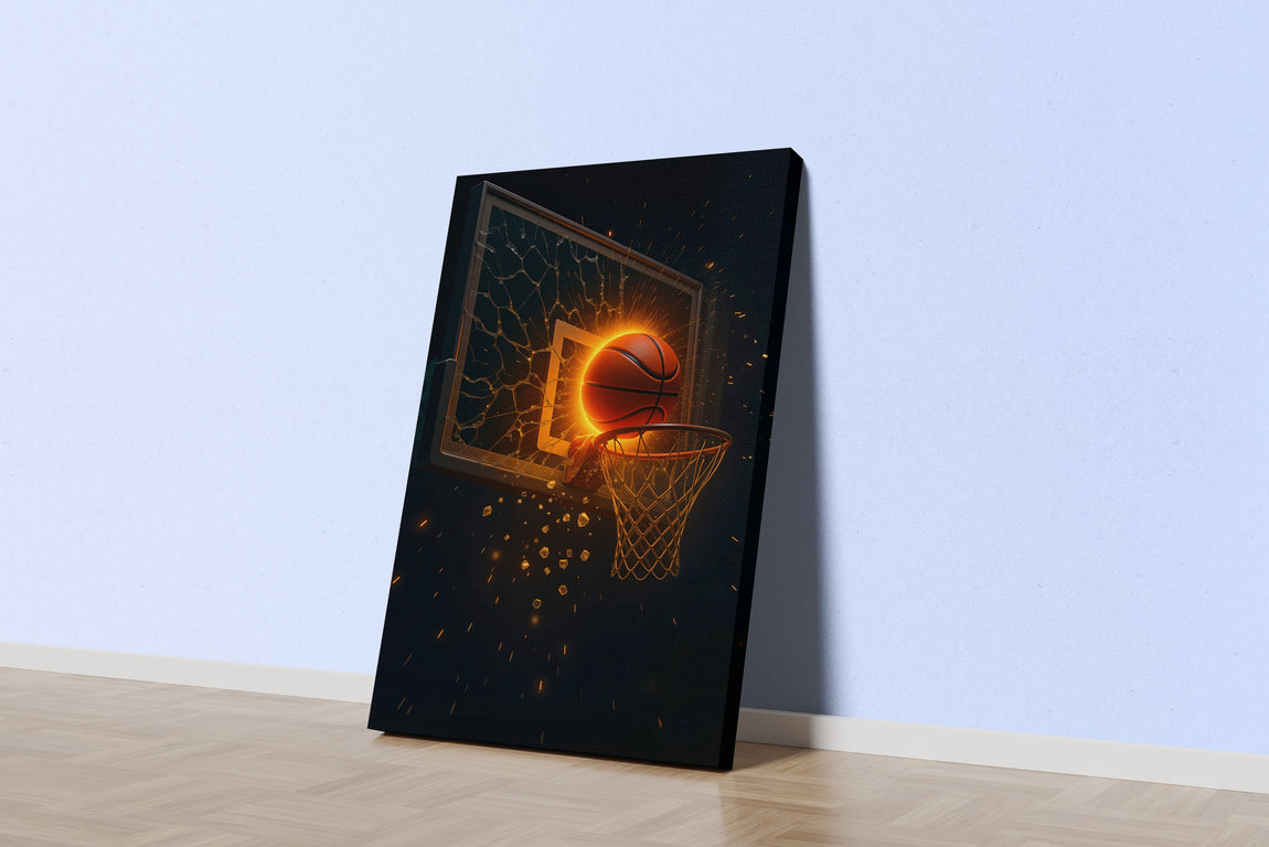 Panyayı Kıran Alevli Smaç Anı Basketbol Temalı Patlama Efektli Spor Sanatı Kanvas Tablo