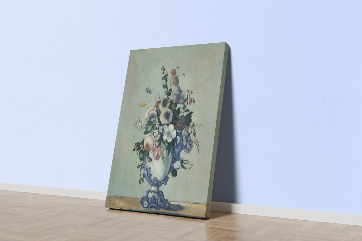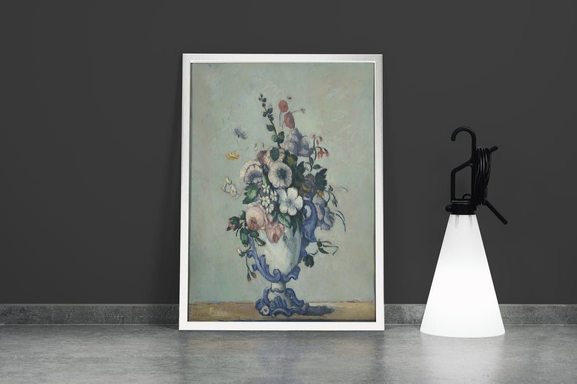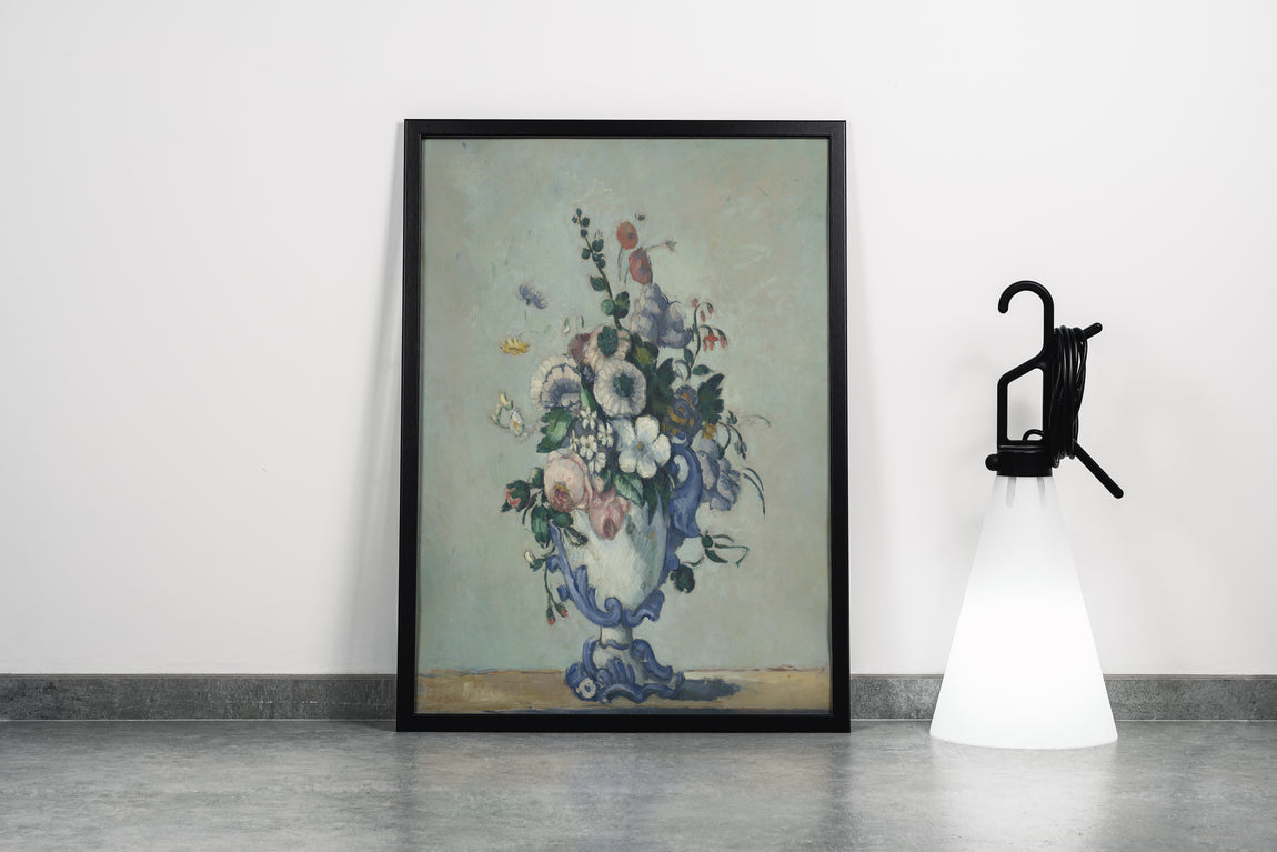 Sanatçının benzersiz fırça darbeleri, çiçeklerin her bir yaprağında ve vazonun kıvrımlarında kendini belli eder. Cézanne, bu eserinde yalnızca doğanın güzelliğini aktarmakla kalmaz, aynı zamanda renklerin ve formların uyumlu birlikteliğini sergiler. Çiçeklerin zarif düzeni, doğallığın yanı sıra ustalıkla kurulmuş bir kompozisyonu da yansıtır. Bu tablo, natürmort sanatının klasik çizgilerini modern estetik anlayışla birleştirerek zamansız bir görsellik ortaya koyar.