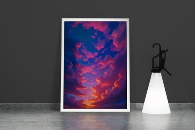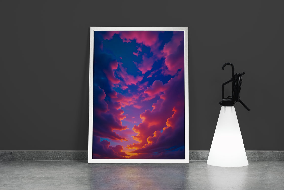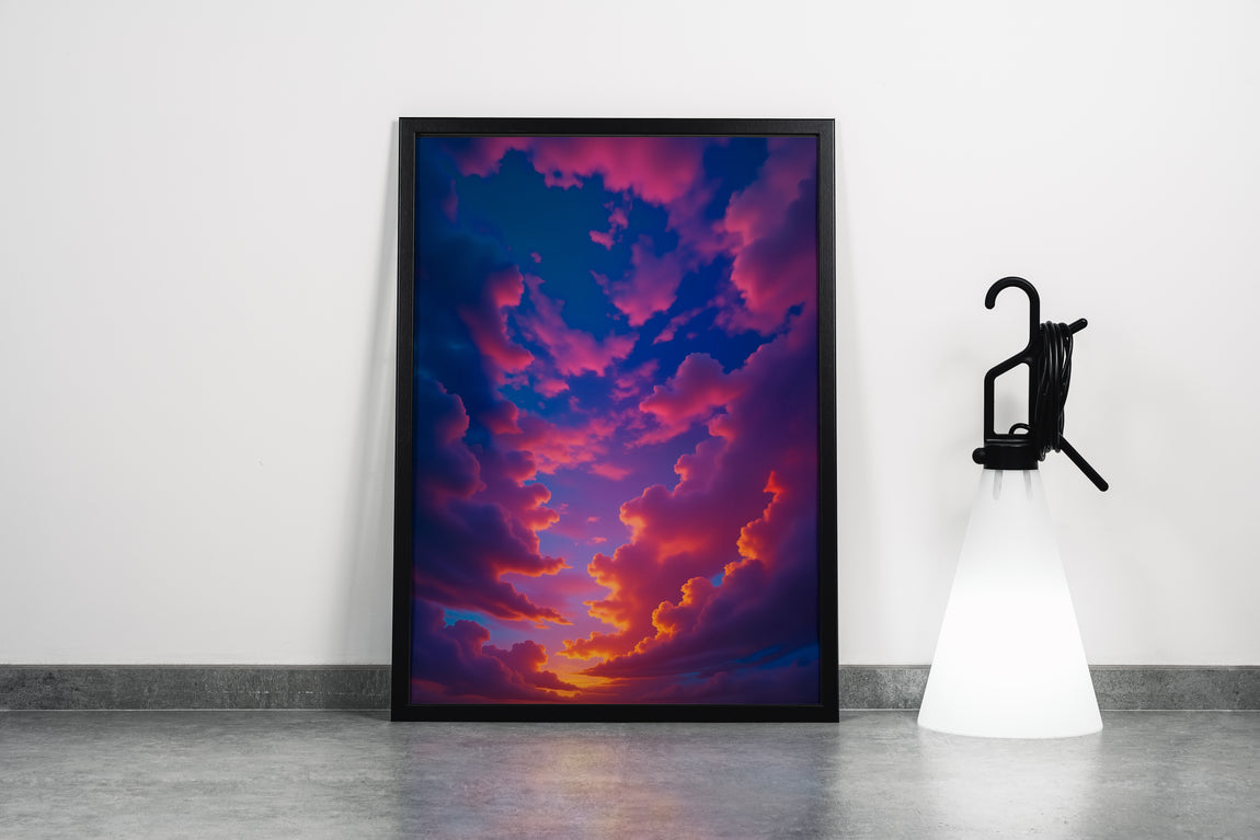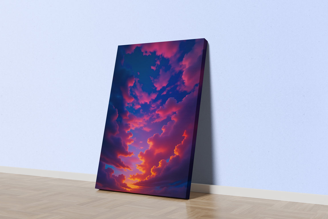 Pembe ve Mavi Bulutların Dansı Gün Batımı Gökyüzü Manzarası Soyut Kanvas Tablo