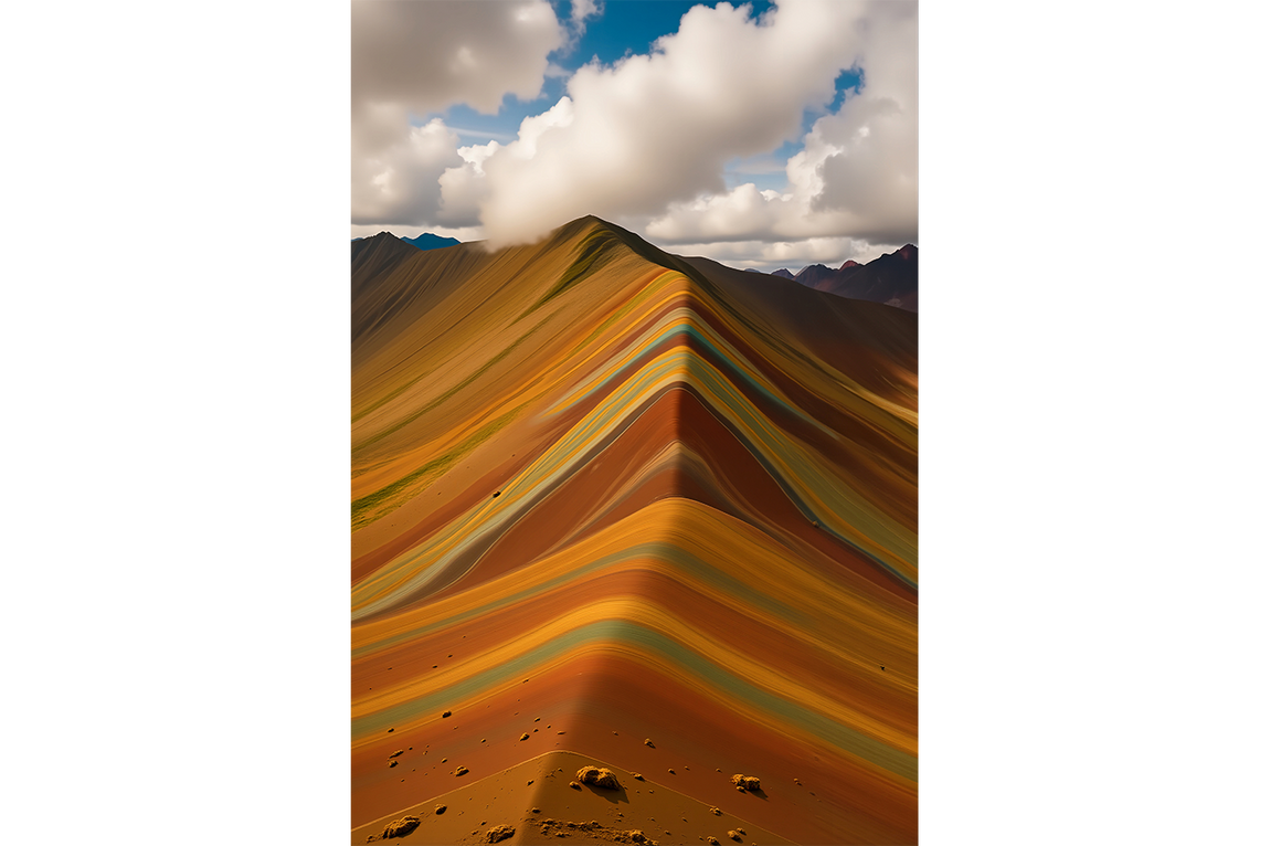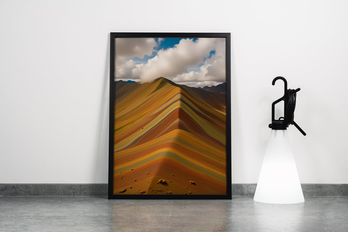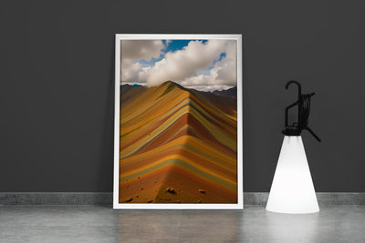 And Dağları'nın arasında gizlenmiş olan Vinicunca, ya da yerel adıyla "Yedi Renkli Dağ" (Montaña de Siete Colores), yakın zamana kadar karla kaplı olduğu için bilinmeyen bir doğa harikasıydı. Küresel ısınmayla birlikte karların erimesi, altındaki bu inanılmaz jeolojik oluşumu ortaya çıkardı. Dağın bu göz alıcı renkleri, bir boya paletinden değil, milyonlarca yıl boyunca katman katman birikmiş olan farklı mineral tortularından gelir. Kırmızı tonlar demir oksitten, sarı tonlar demir sülfürden, yeşil ve mavi tonları ise kloritten kaynaklanır. Bu tablo, işte bu jeolojik sürecin, yani doğanın sabırlı ve yavaş sanatının en muhteşem sonucunu evinize taşır.