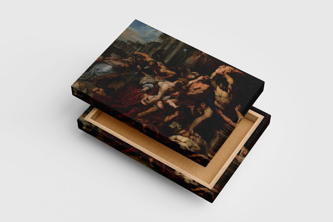 Flaman Barok sanatının dev ismi Peter Paul Rubens'in en dramatik, en enerjik ve en sarsıcı başyapıtlarından biri olan "Masumların Katliamı", şimdi sanat tarihinin bu unutulmaz anını mekanlarınıza taşımak için kanvas tablo formunda. Bu eser, sadece bir tablo değil, aynı zamanda tiranlığın acımasızlığı, masumiyetin trajedisi ve anne sevgisinin çaresizliği üzerine yapılmış, tuval üzerine yansıtılmış sarsıcı bir görsel operadır.