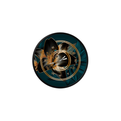 petrol yeşili fon üzeri altın zambak, MDF duvar saati