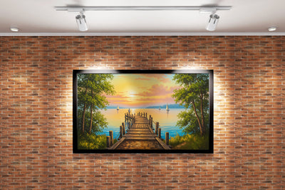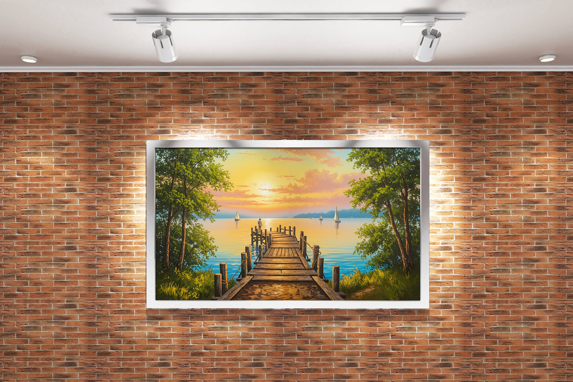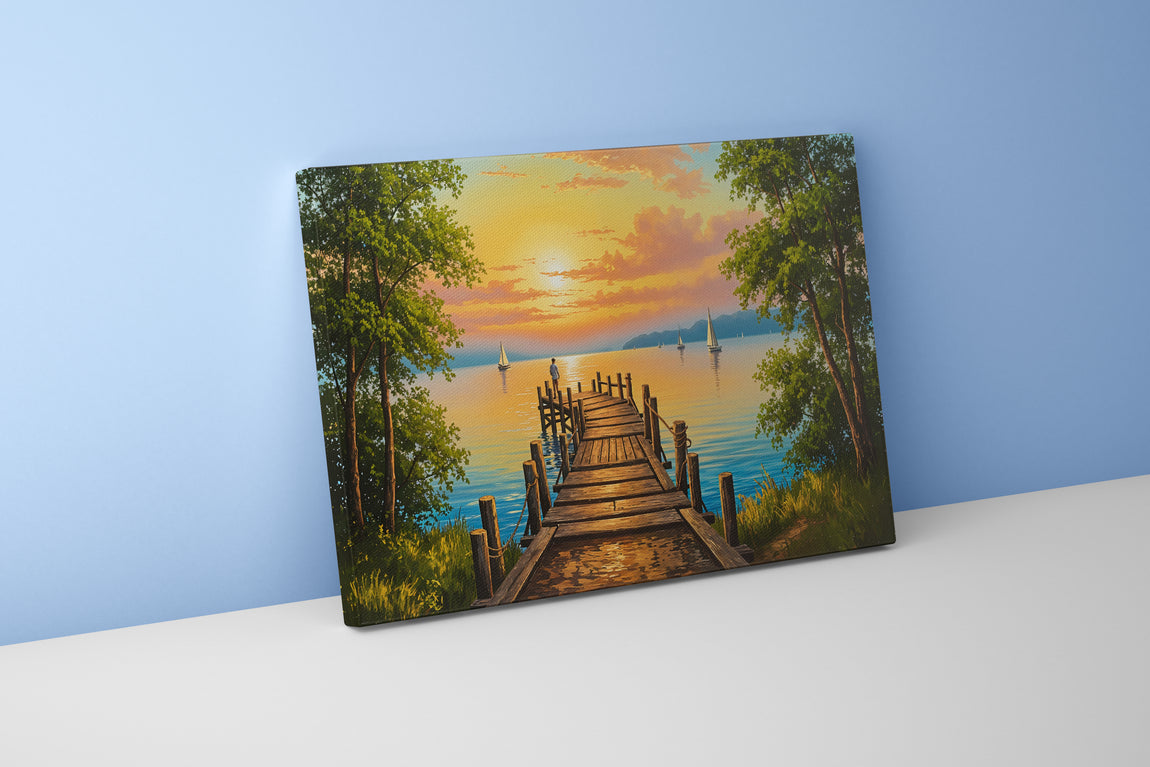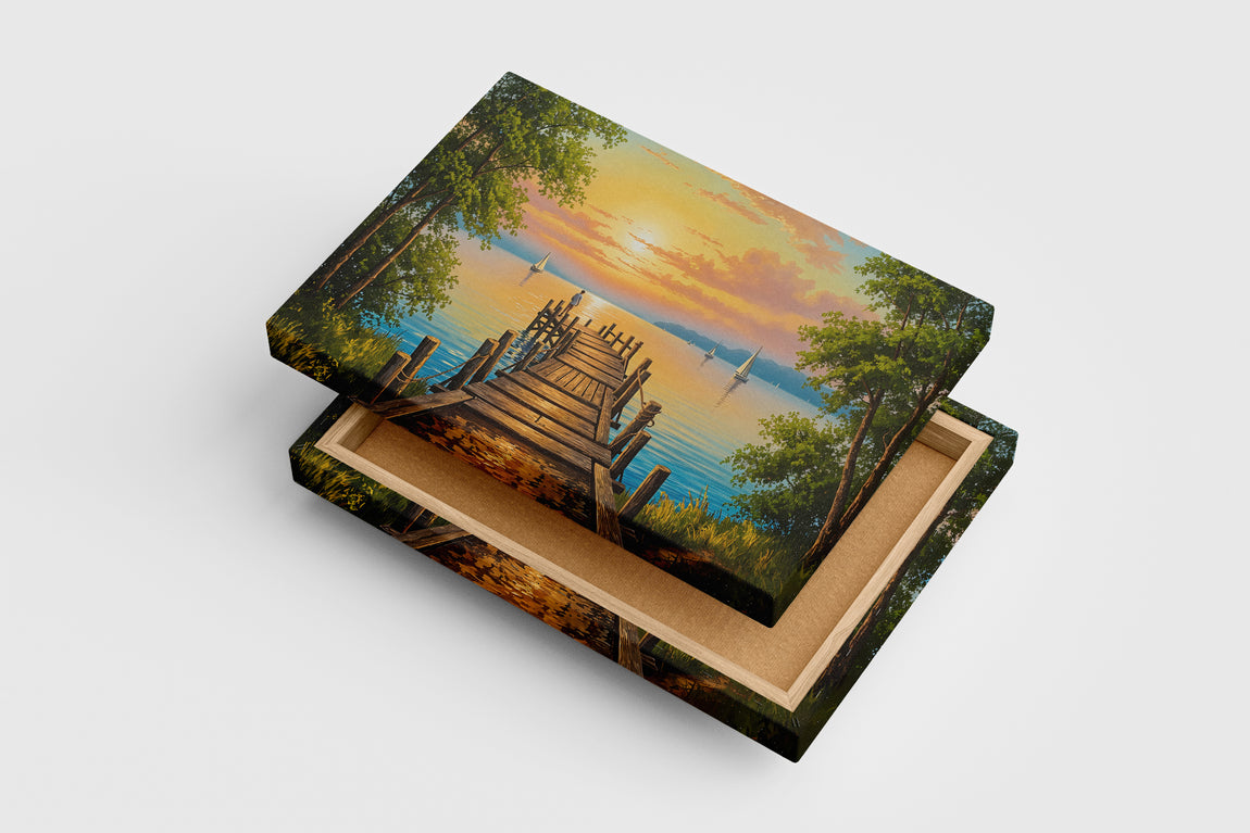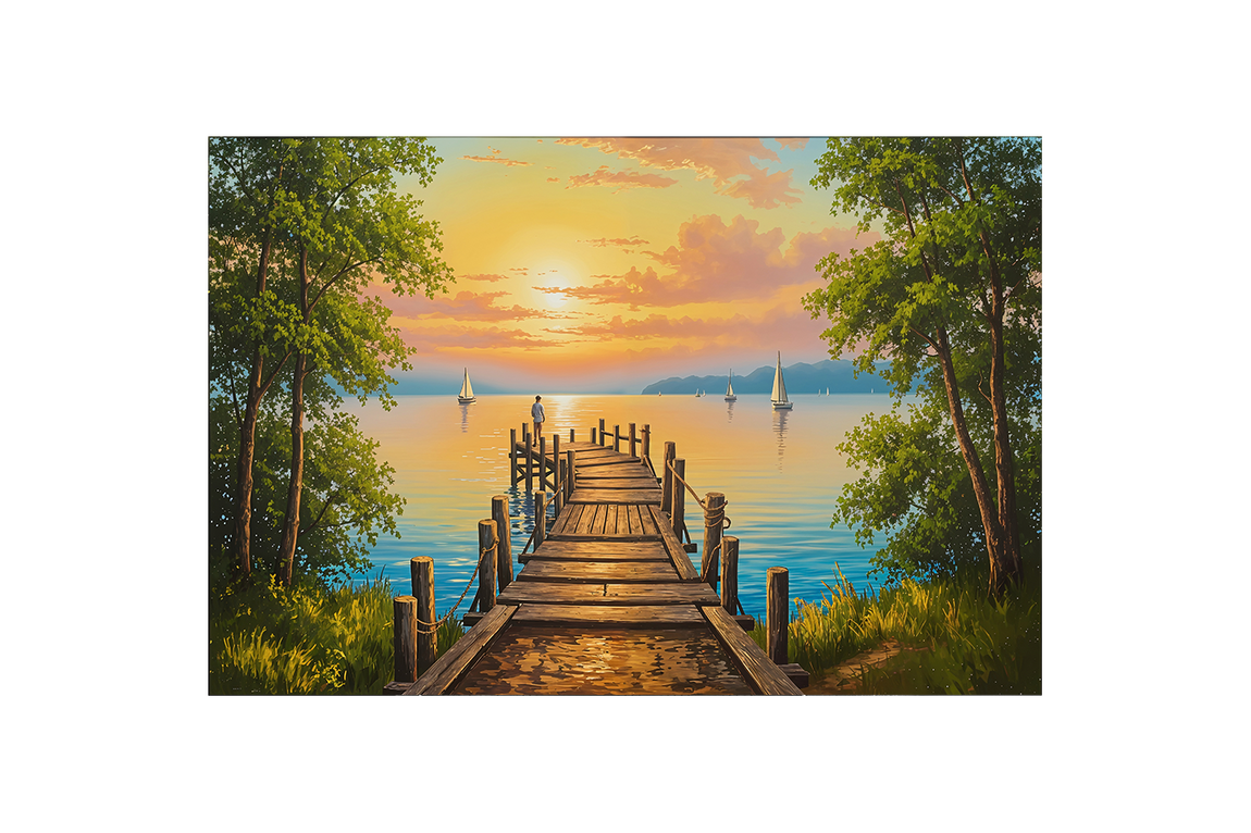 Nehir kenarında yer alan iskele ve etrafını saran canlı çiçeklerin renkli detayları, her ortamda huzur verici ve estetik bir atmosfer yaratır. Canlı renkleri ve özenle işlenen baskı kalitesi, dekorasyonunuza doğal bir dokunuş katarak mekânınızı canlandırır. Dayanıklı malzemelerle üretilmiş yüksek çözünürlüklü baskı, uzun ömürlü kullanım sağlar ve solma yapmadan canlılığını korur.