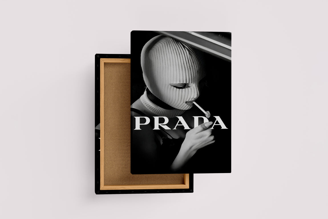 - Prada Marka Kimliği: Eserdeki Prada logosu, basit bir marka isminden çok daha fazlasını ifade eder. O, avangart tasarımı, entelektüel derinliği ve geleneksel lüks anlayışını sorgulayan duruşu simgeler. Bu logo, kompozisyona anında bir sofistikasyon ve kültürel bir ağırlık katar.