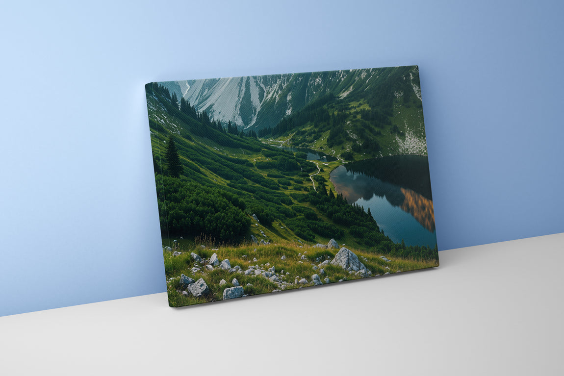 Doğanın huzur veren yansımalarını ve vadinin sakin görünümünü kaliteli bir baskıyla duvarlarınıza taşıyın. Detayları özenle yansıtılan bu eser, yaşam alanlarınıza dinginlik ve estetik katarken, uzun ömürlü malzemesi sayesinde canlılığını yıllarca korur. Modern dekorasyonunuza zarif bir dokunuş yapmak için ideal bir seçim.
