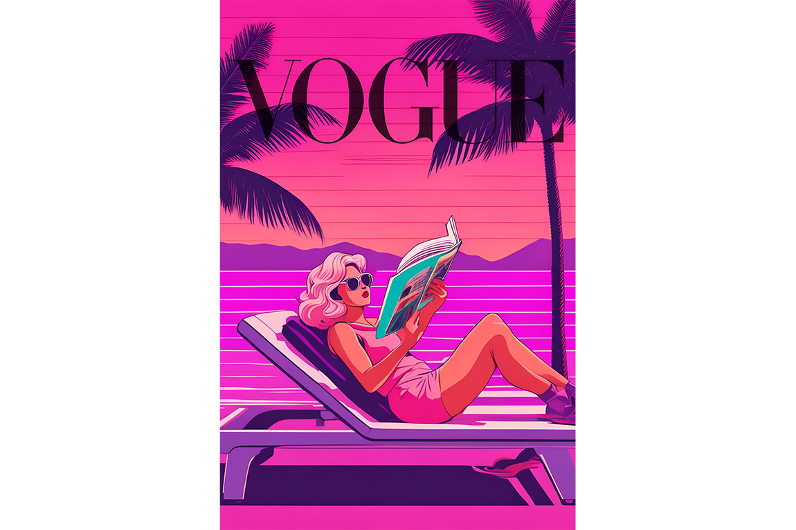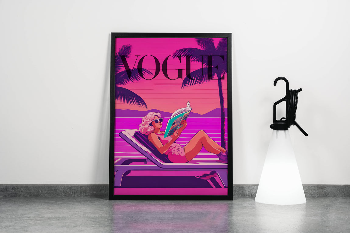 retrowave vogue, pop art, beauty, reading, art, kanvas tablo
