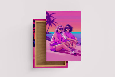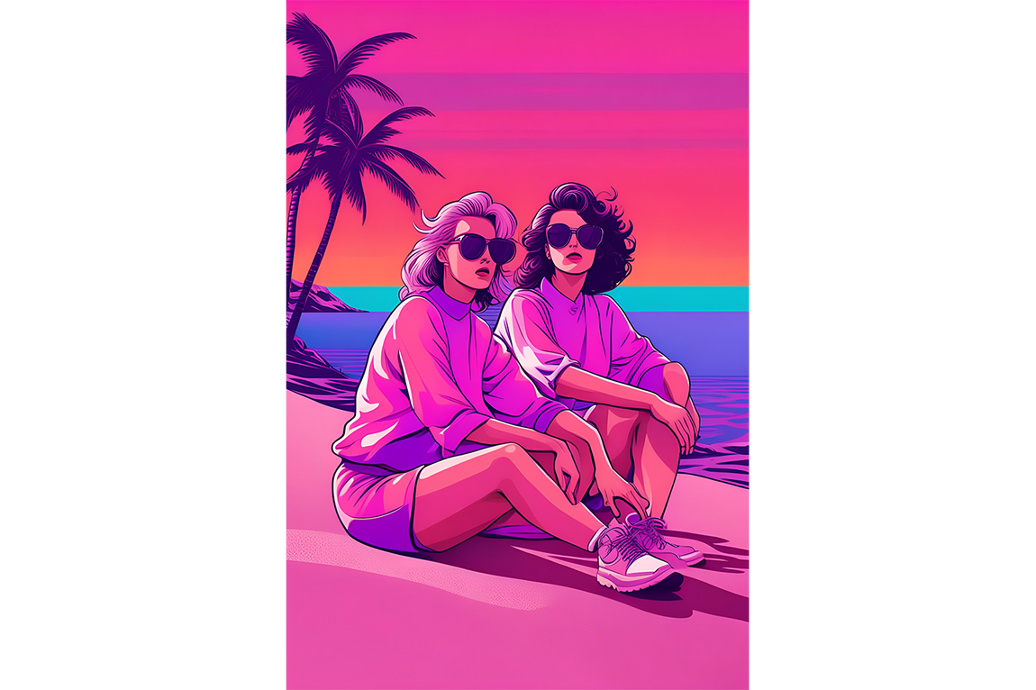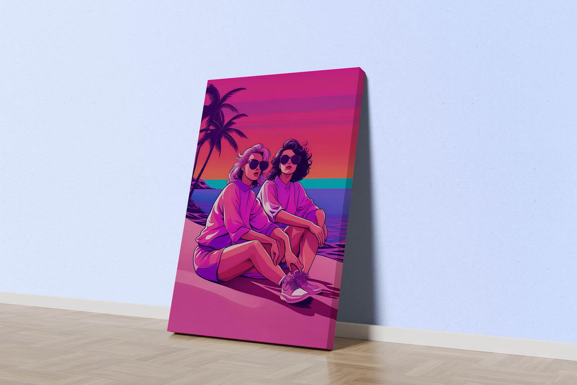 retrowave vogue, pop art, palm, sunshine, sitting on the beach, art, kanvas tablo