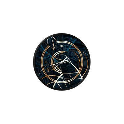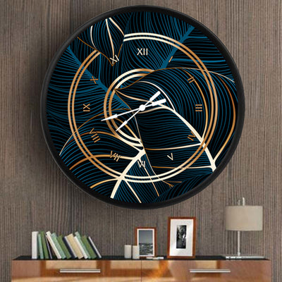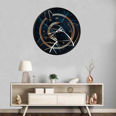 sarmal altın ve mavi yaprak deseni, MDF duvar saati