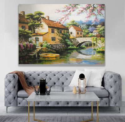 Sıralı Evler Manzarası – Uzaktan Kumandalı LED Işıklı Kanvas Tablo