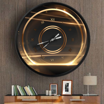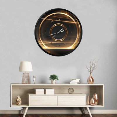 siyah zeminli altın ışık dalgaları, MDF duvar saati