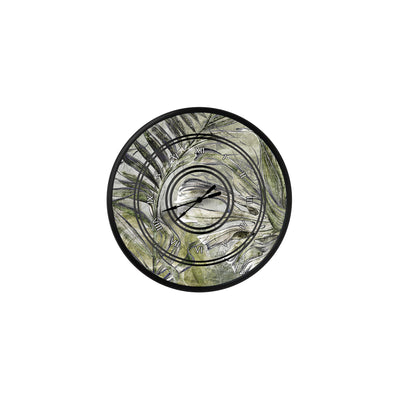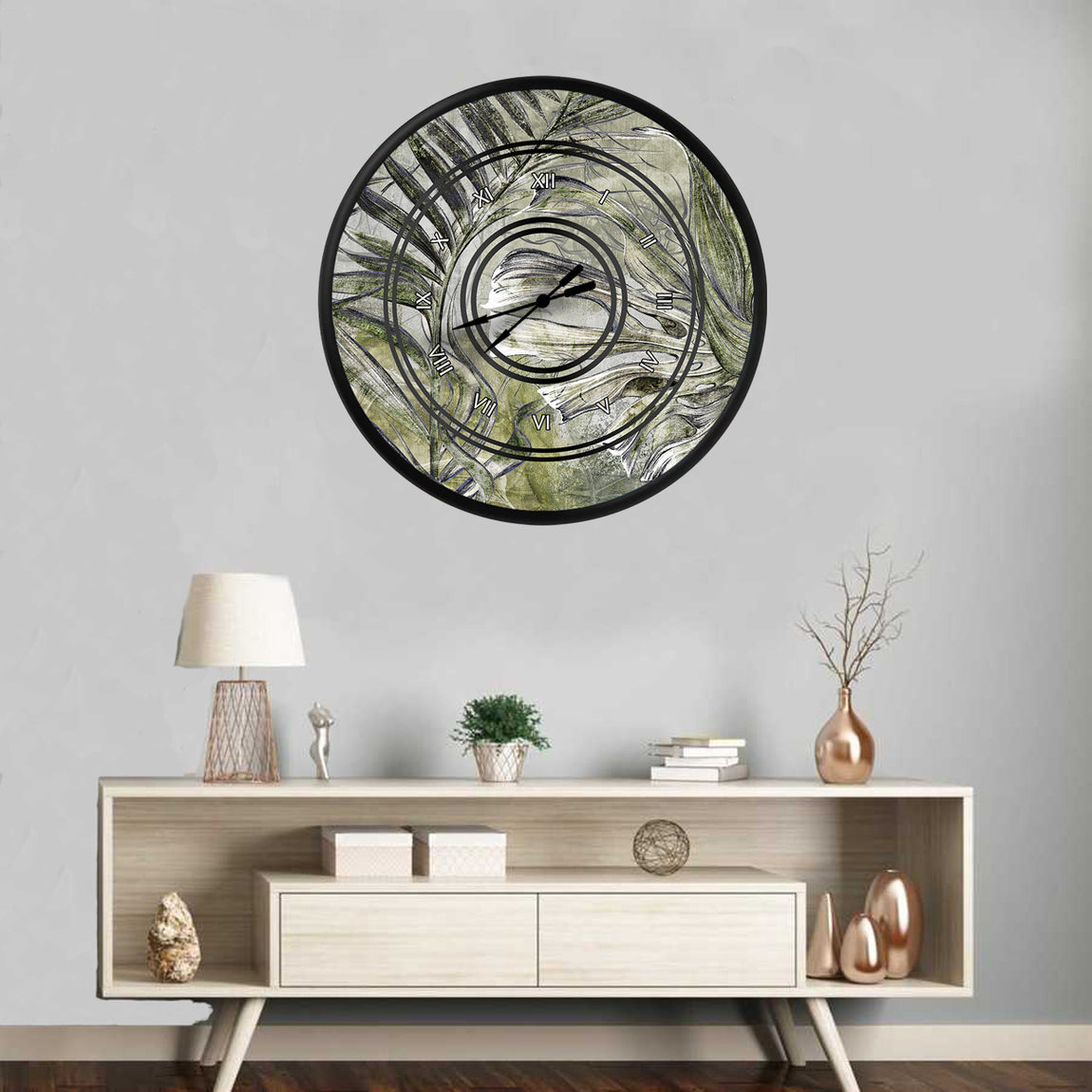 soluk yeşil tonlarında soyut yaprak deseni, MDF duvar saati