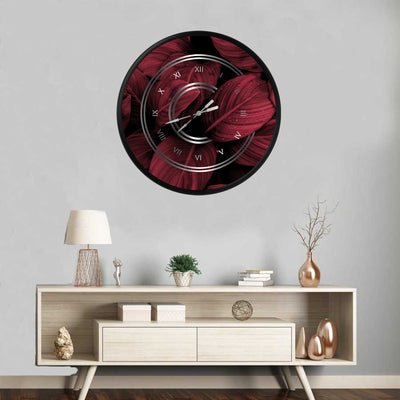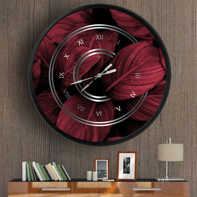 su damlalı bordo renkli yapraklar, MDF duvar saati