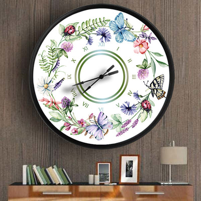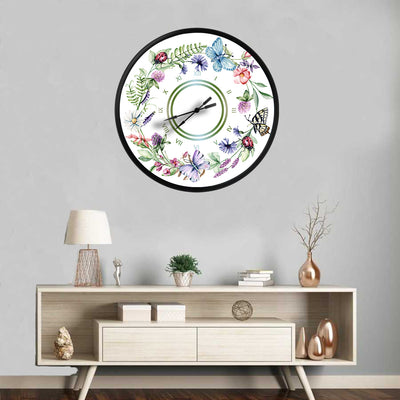 sulu boya kır çiçekleri ve kelebekler, MDF duvar saati